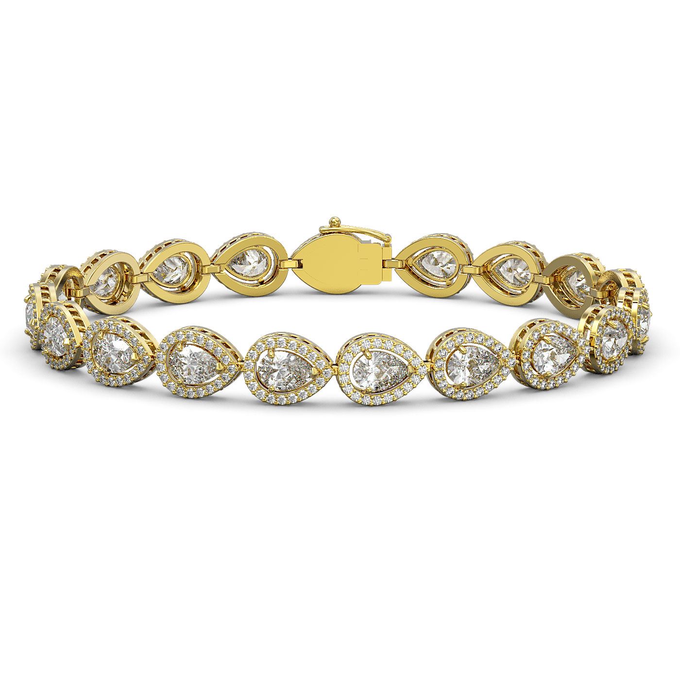 REF-2650H4A -42736 ---- 14.28 CTW Pear Diamond Designer Bracelet 18K Yellow Gold ---- Luxury Designer Brand Bracelet Appraised at $116,600 Certificate Number US42736 18K Yellow gold, Bracelet Size is 7 Inches, Bracelet measuring approx. 7 mm x 7 Inches, weighing in total approx. 18 grams. Made in the USA and is stamped 18K, Main stone 11.4 carat total weight containing 19 pieces of I-J color with VS/SI quality Pear shape cut Diamond , Stone #2 2.88 carat total weight containing 361 pieces of G-H color with VS/SI quality Round shape cut Diamond