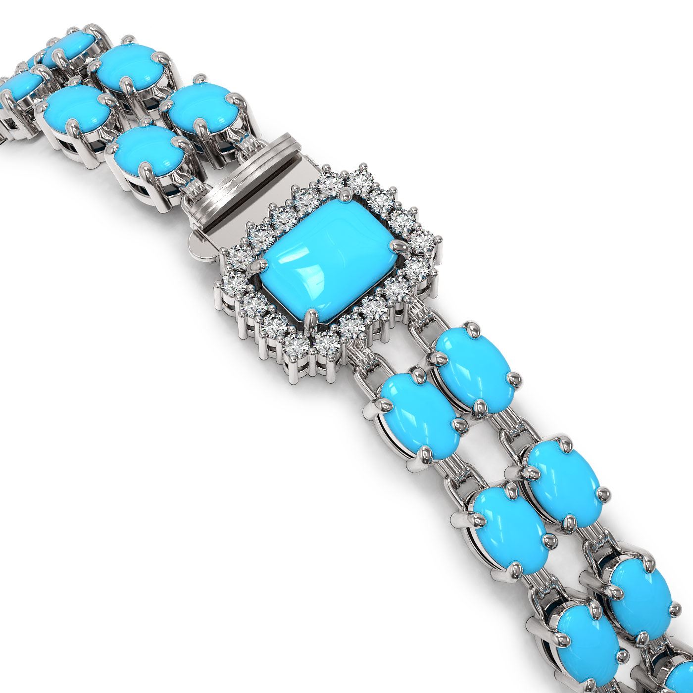 REF-229N5F - SKU: 45074 ---- 14.28 ctw Turquoise & Diamond Bracelet 14K White Gold