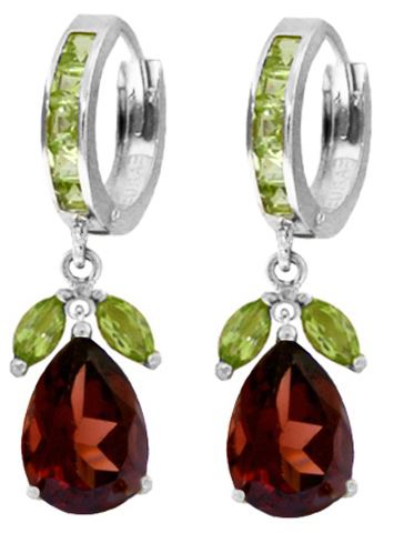 Genuine 14K White Gold 14.3 ctw Garnet & Peridot Earrings