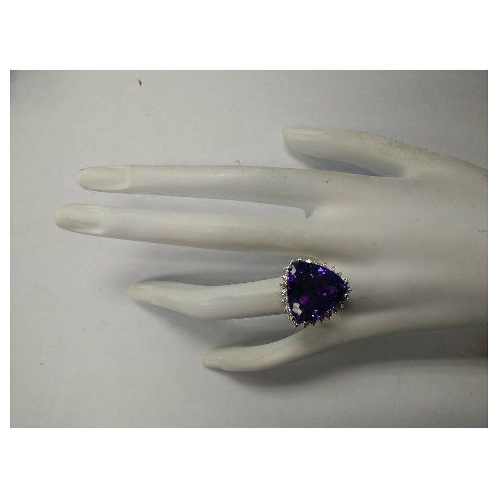 14.31 CTW Natural Amethyst And Diamond Ring In 14K Solid Yellow Gold