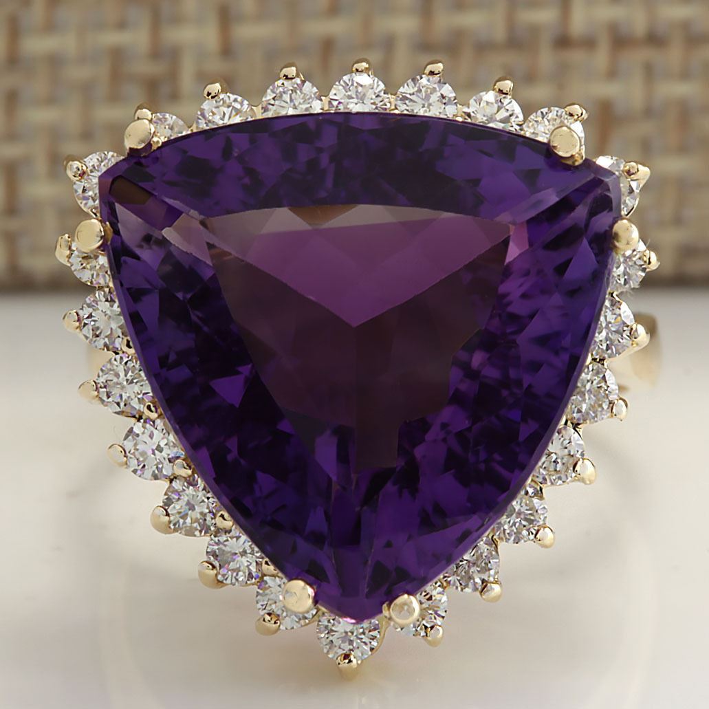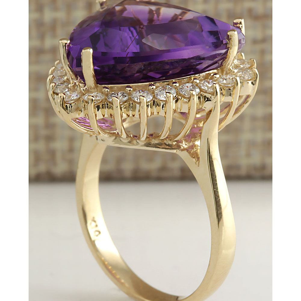 14.31 CTW Natural Amethyst And Diamond Ring In 18K Solid Yellow Gold