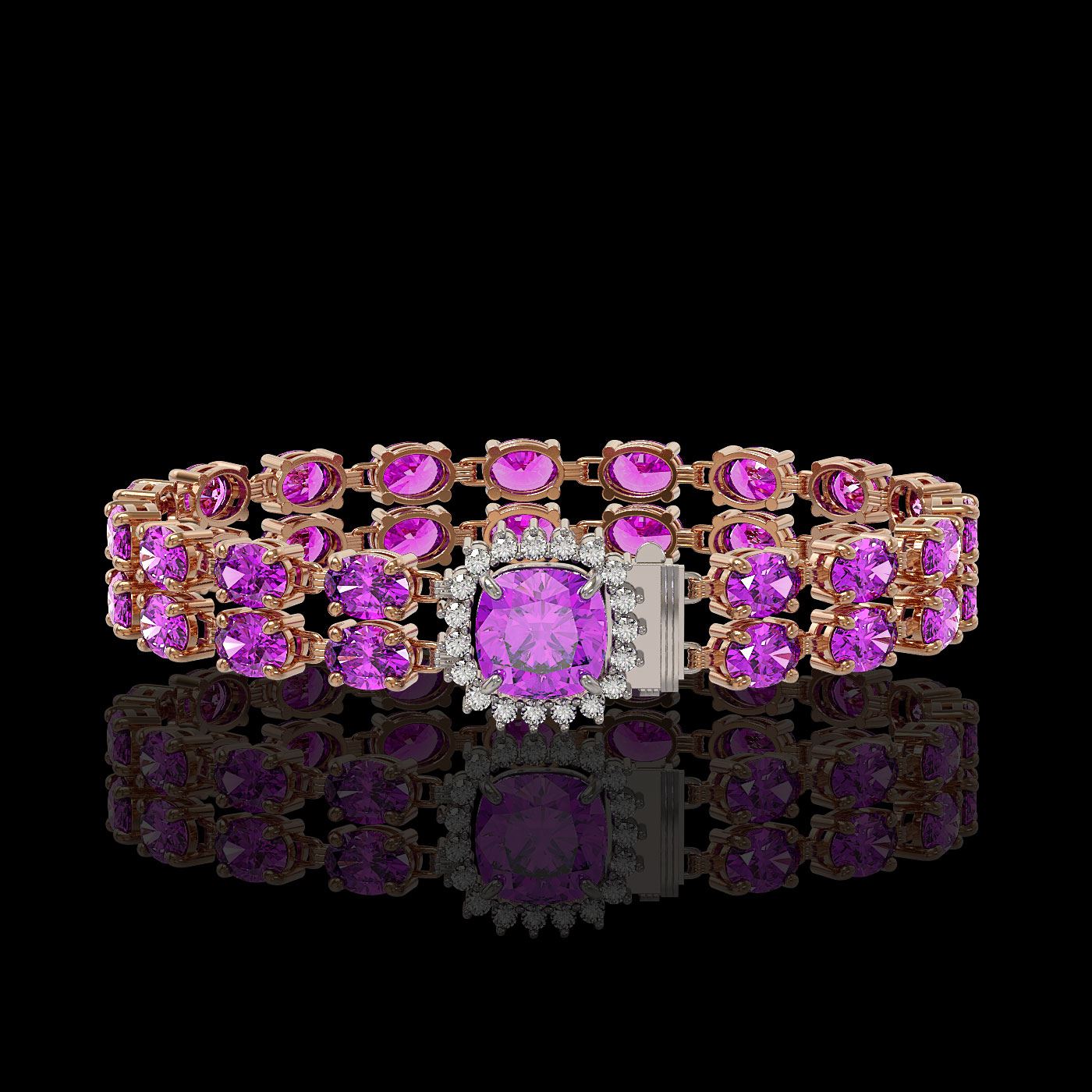 REF-178M2G - SKU: 45633 ---- 14.31 ctw Amethyst & Diamond Bracelet 14K Rose Gold
