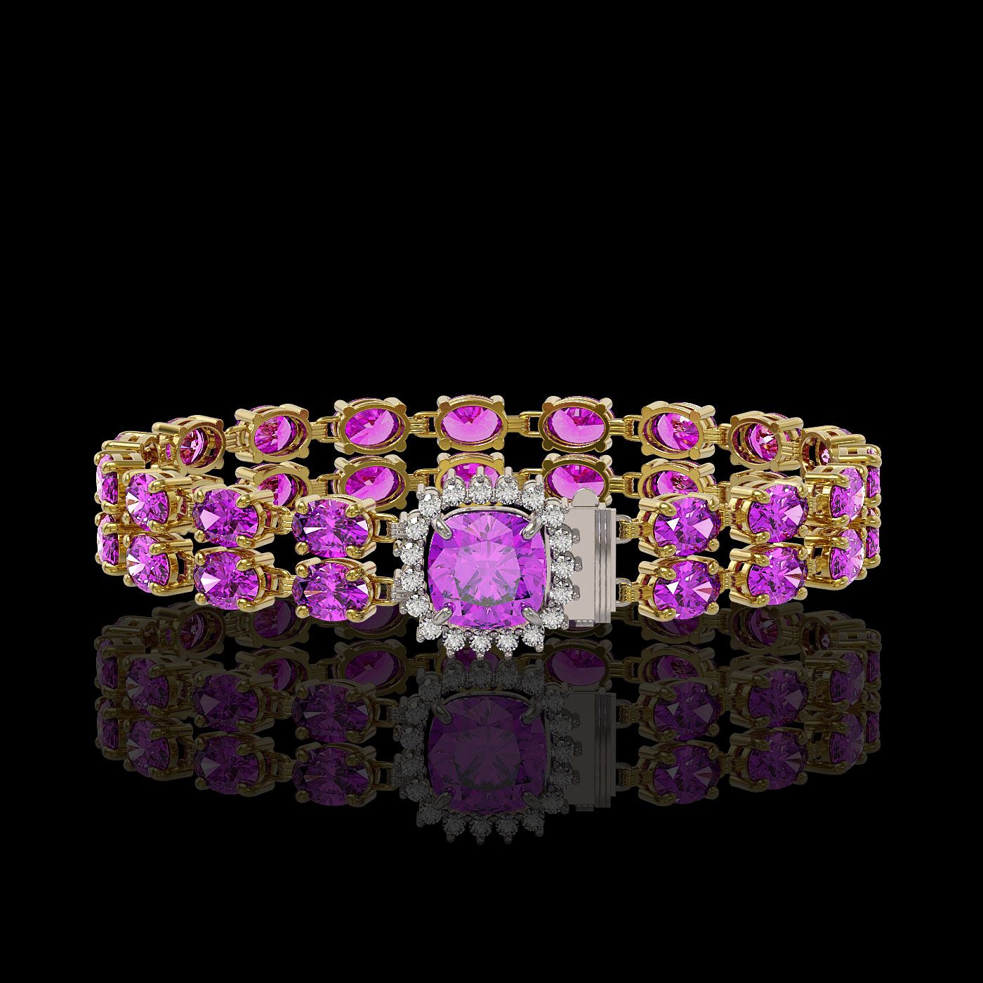 REF-178W2H - SKU: 45634 ---- 14.31 ctw Amethyst & Diamond Bracelet 14K Yellow Gold