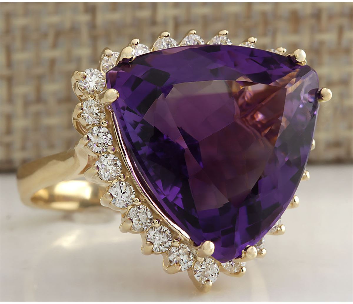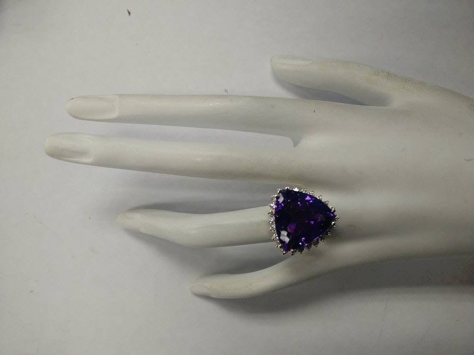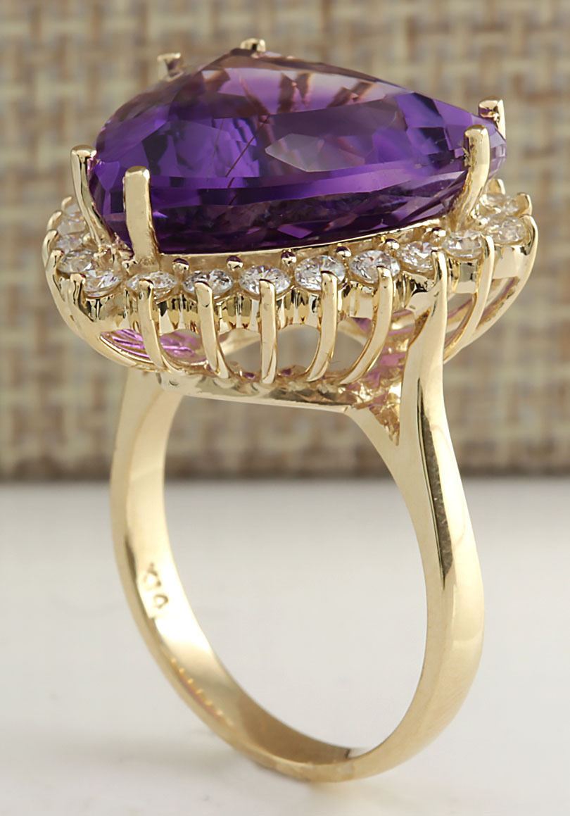 Stamped: 14K Ring Size: 7 Total Ring Weight: 6.5 Grams Diamond Weight: Total natural diamond weight is .90carat. SI1-SI2 clarity / G-H color Gemstone Weight: Total Natural Amethyst Weight is 13.41ctw (Measures: 16.90x17.22mm) Face Measures: 20.63x20.05mm Main stone color: Purple [SKU:703050]