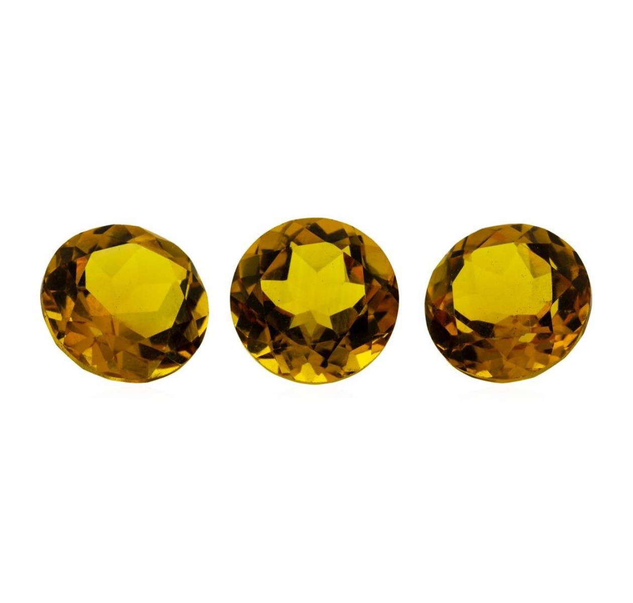 One natural round cut citrine quartz parcel of three with an exact weight of 14.36ctw., clarity is eye clean, yellowish orange, medium dark. Gemological Appraisals Services estimates the retail value at $574.4 GAS Appraised.