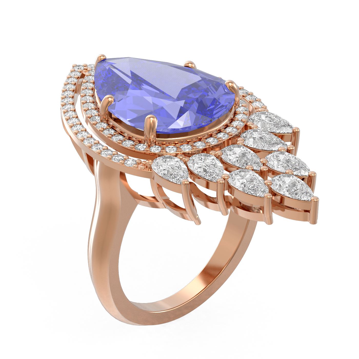 14.36 ctw Tanzanite & Diamond Ring 18K Rose Gold