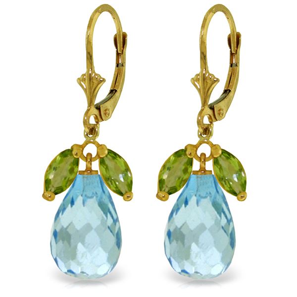 Genuine 14K Yellow Gold 14.4 ctw Blue Topaz & Peridot Earrings