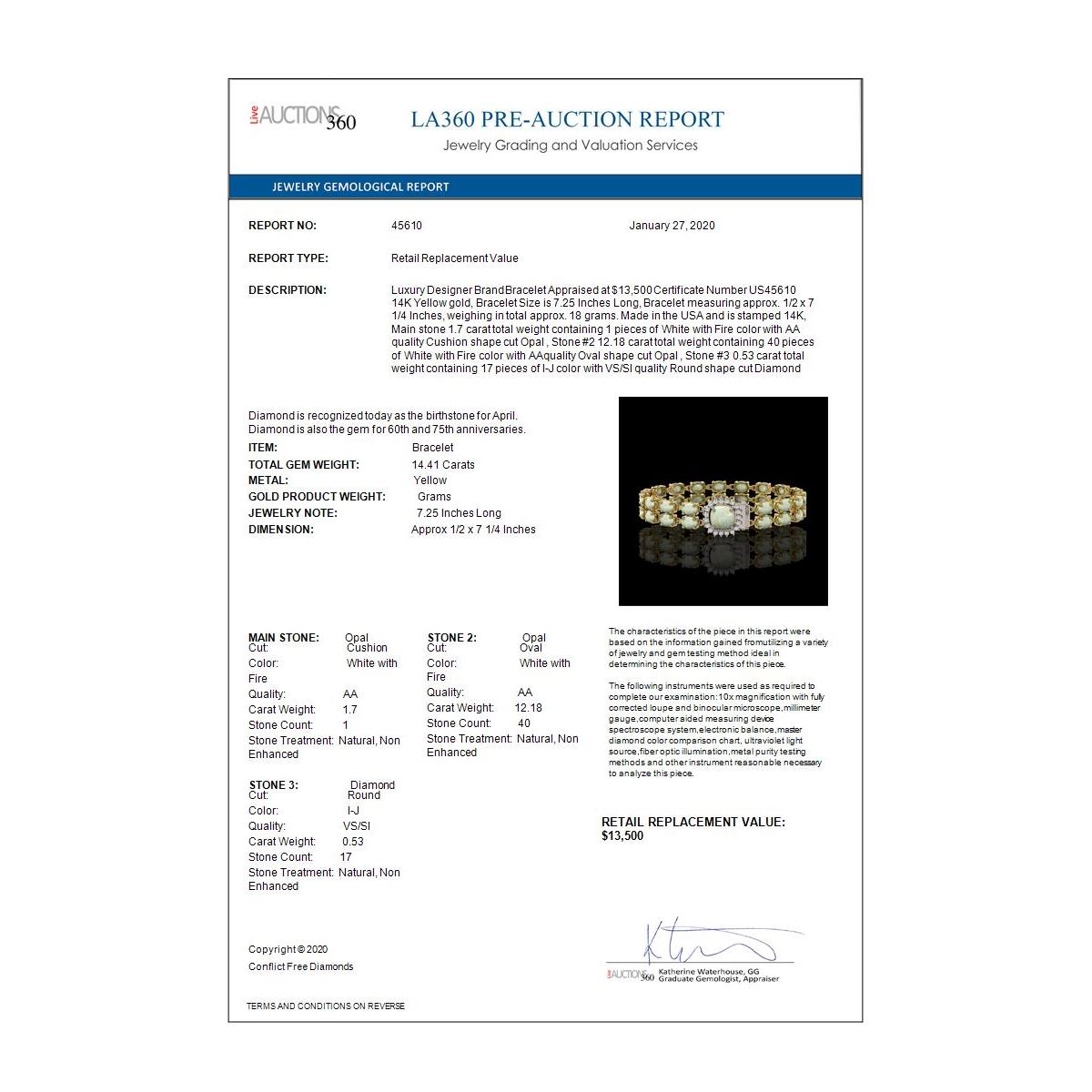 REF-245R5K - SKU: 45610 ---- 14.41 ctw Opal & Diamond Bracelet 14K Yellow Gold