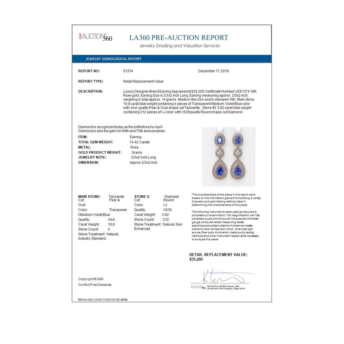 REF-800Y2X - SKU: 51374 ---- 14.42 ctw Tanzanite & Diamond Earrings 18K Rose Gold