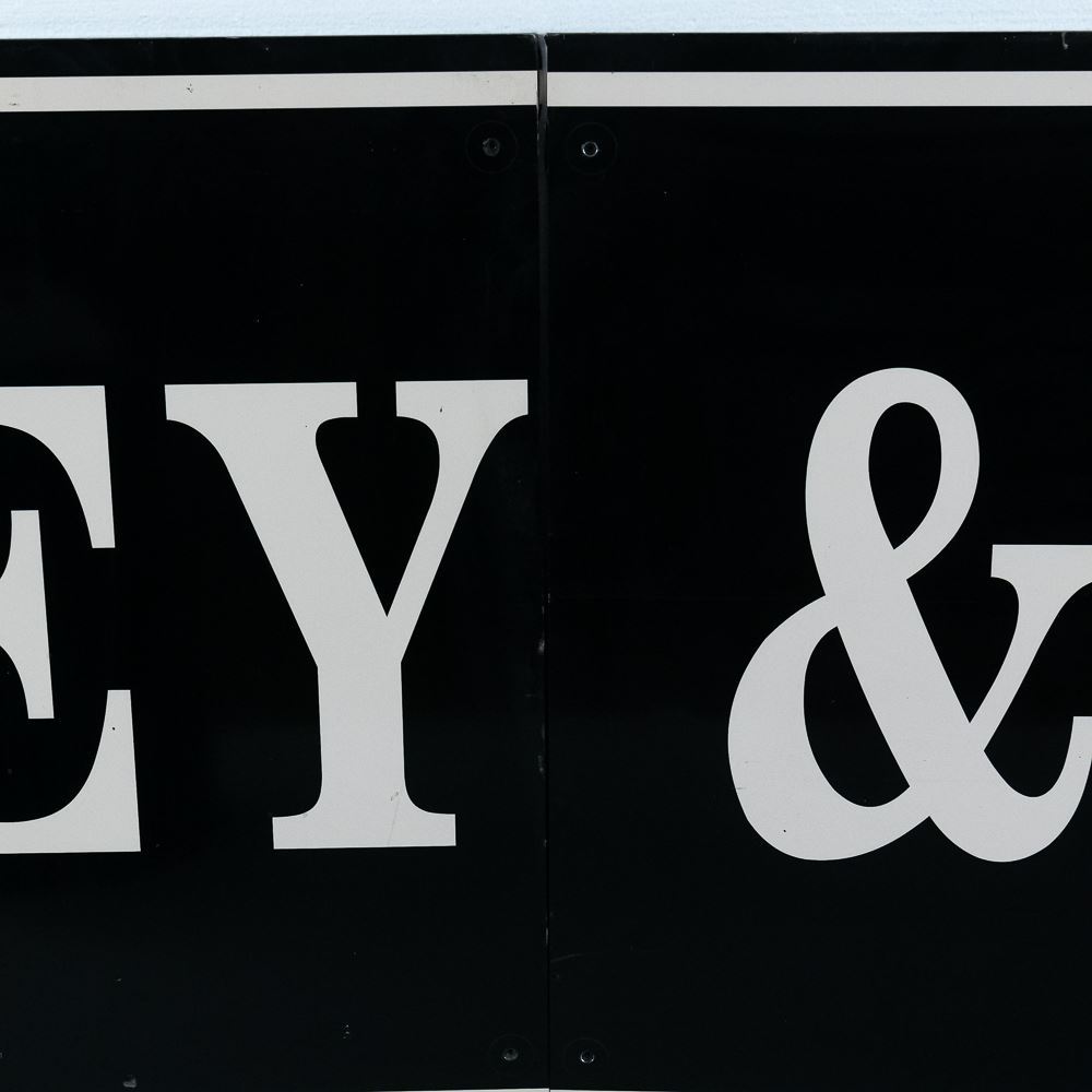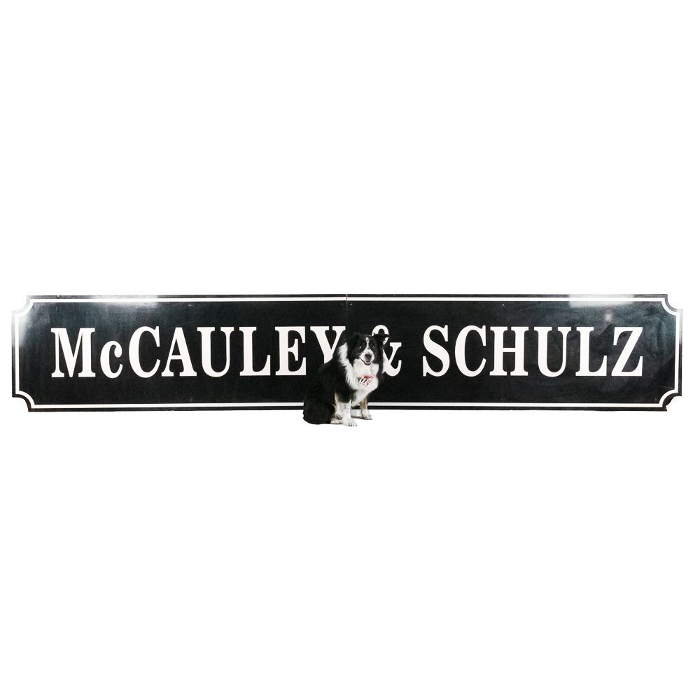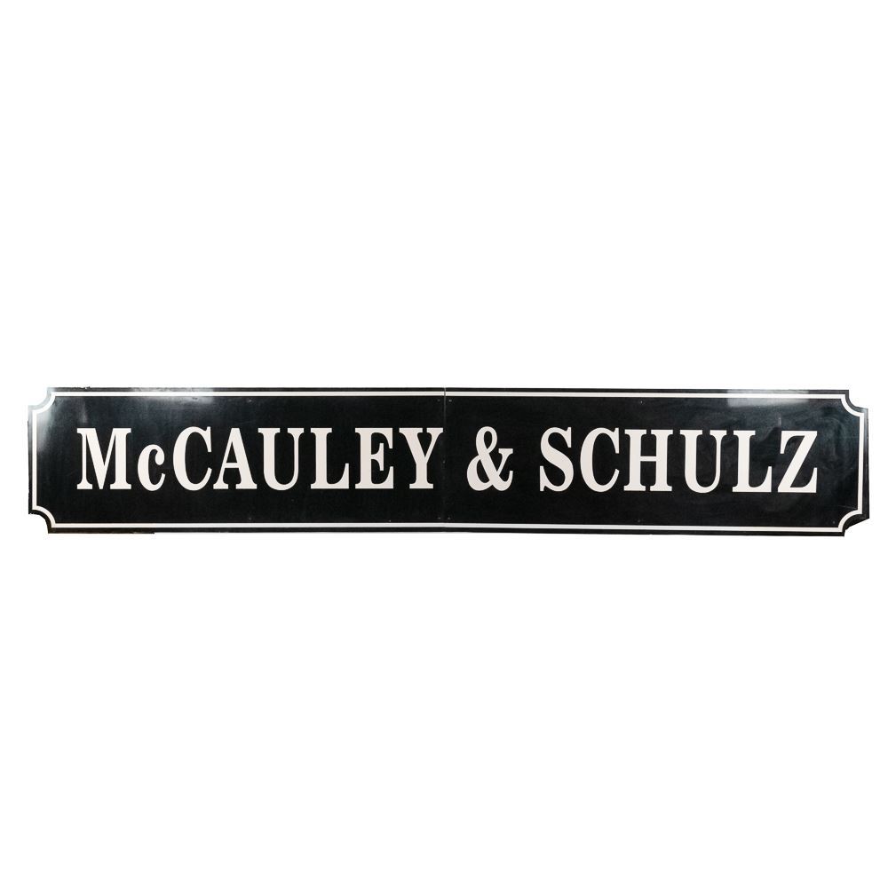 Single sided 14.5' McCauley & Schulz 30" t x 174"l two piece sign;(two sections both 30"t x 87"l) featuring acrylic board construction. Very good over condition with some minor age and wear related cosmetic imperfections. Perfect addition to your collection, please use photos to judge condition and bid accordingly.