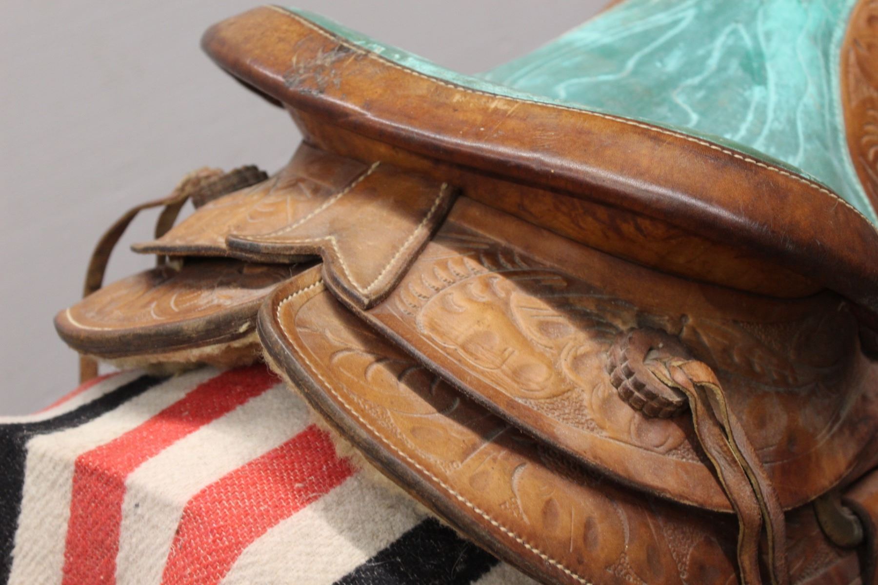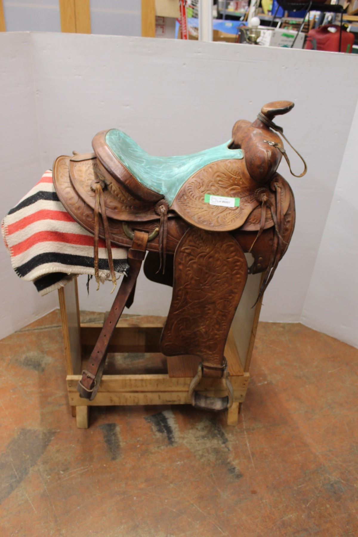 * 14.5" Roping Saddle, 3-Way Front Rigging Rawhide covered Wood Tree. 6/5 Gullet width, Double Rigging, w/ Blanket This Item is either overweight, oversized, or considered too dangerous for Canada Post and must be picked up or Couriered.
