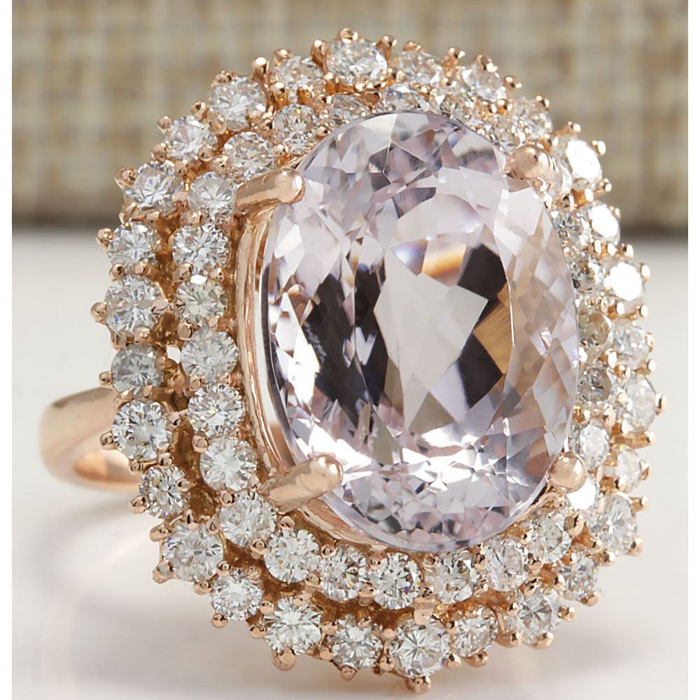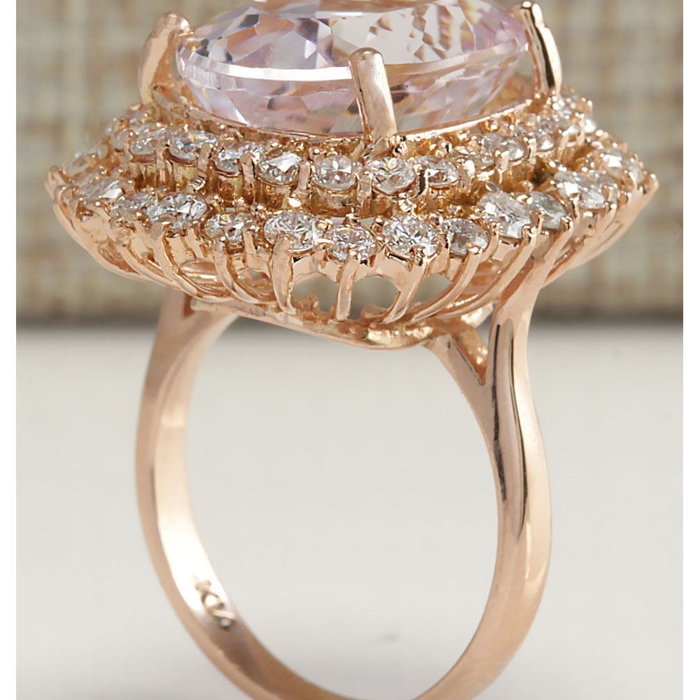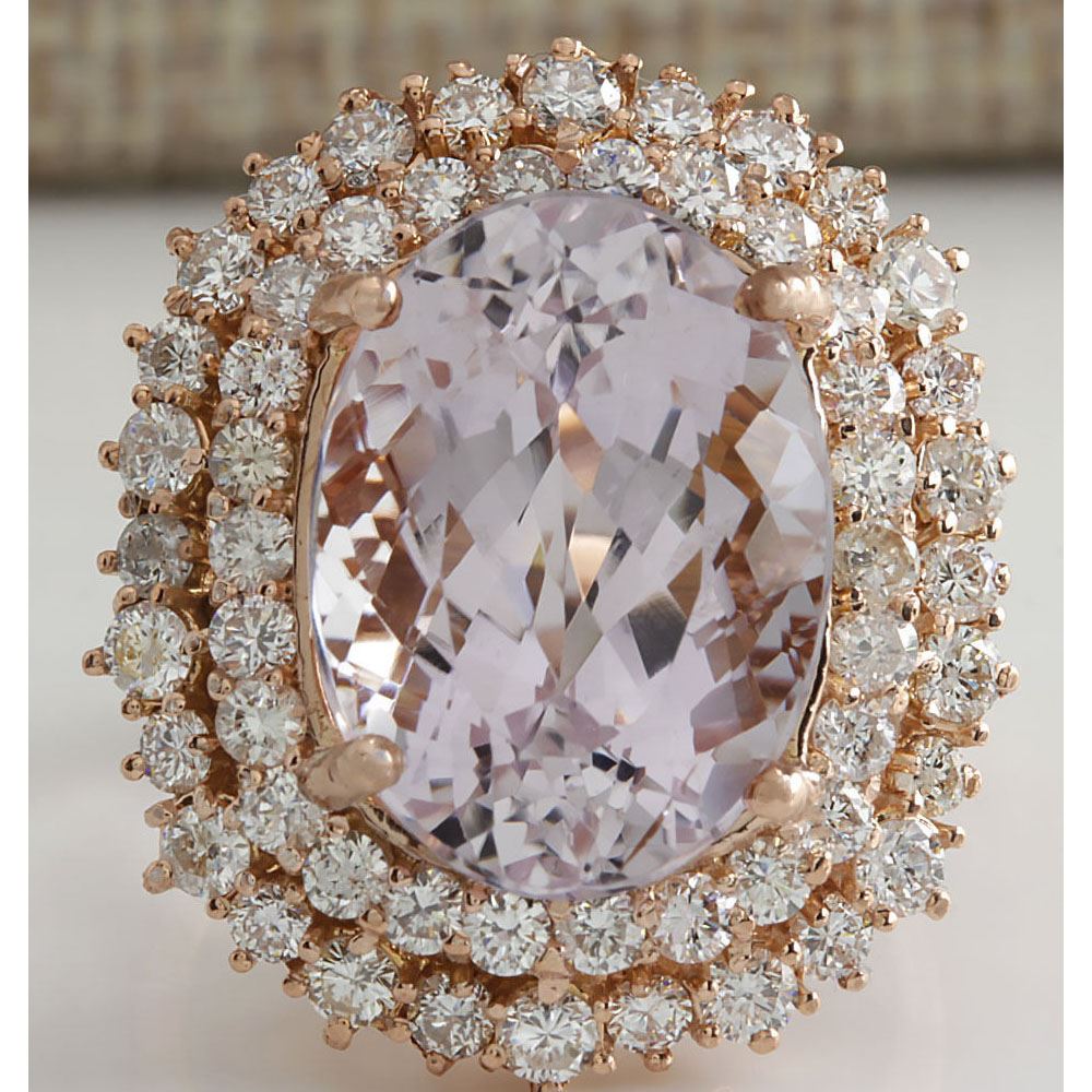 14.50 CTW Natural Peach Morganite And Diamond Ring In 18K Solid Rose Gold
