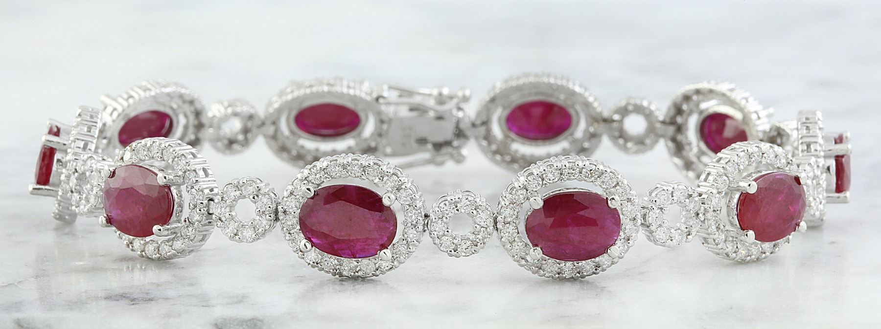 14.50 CTW Ruby 18K White Gold Diamond Bracelet