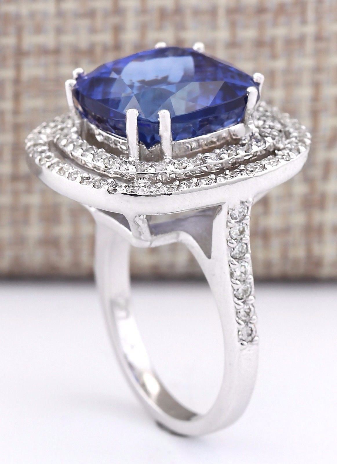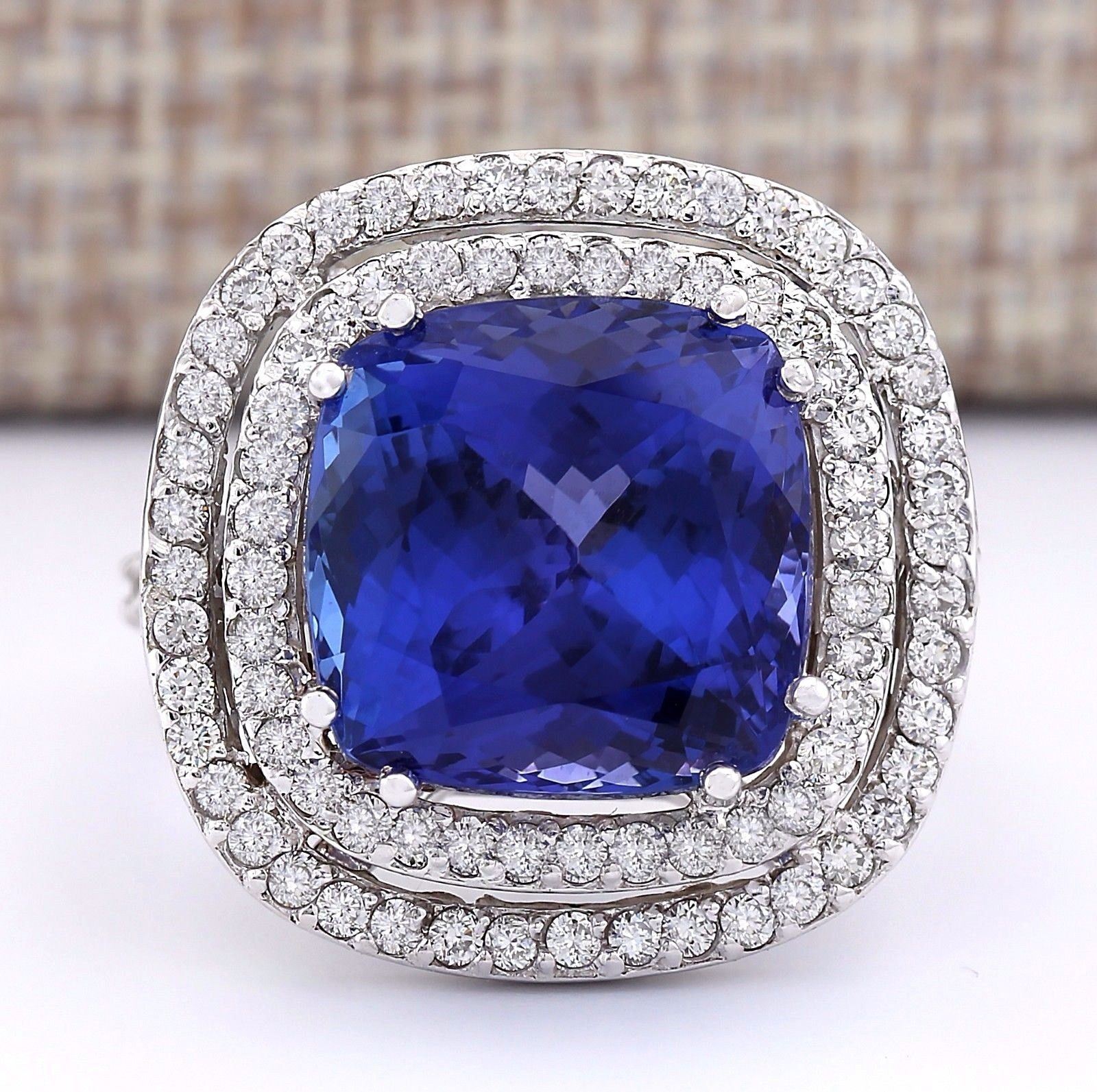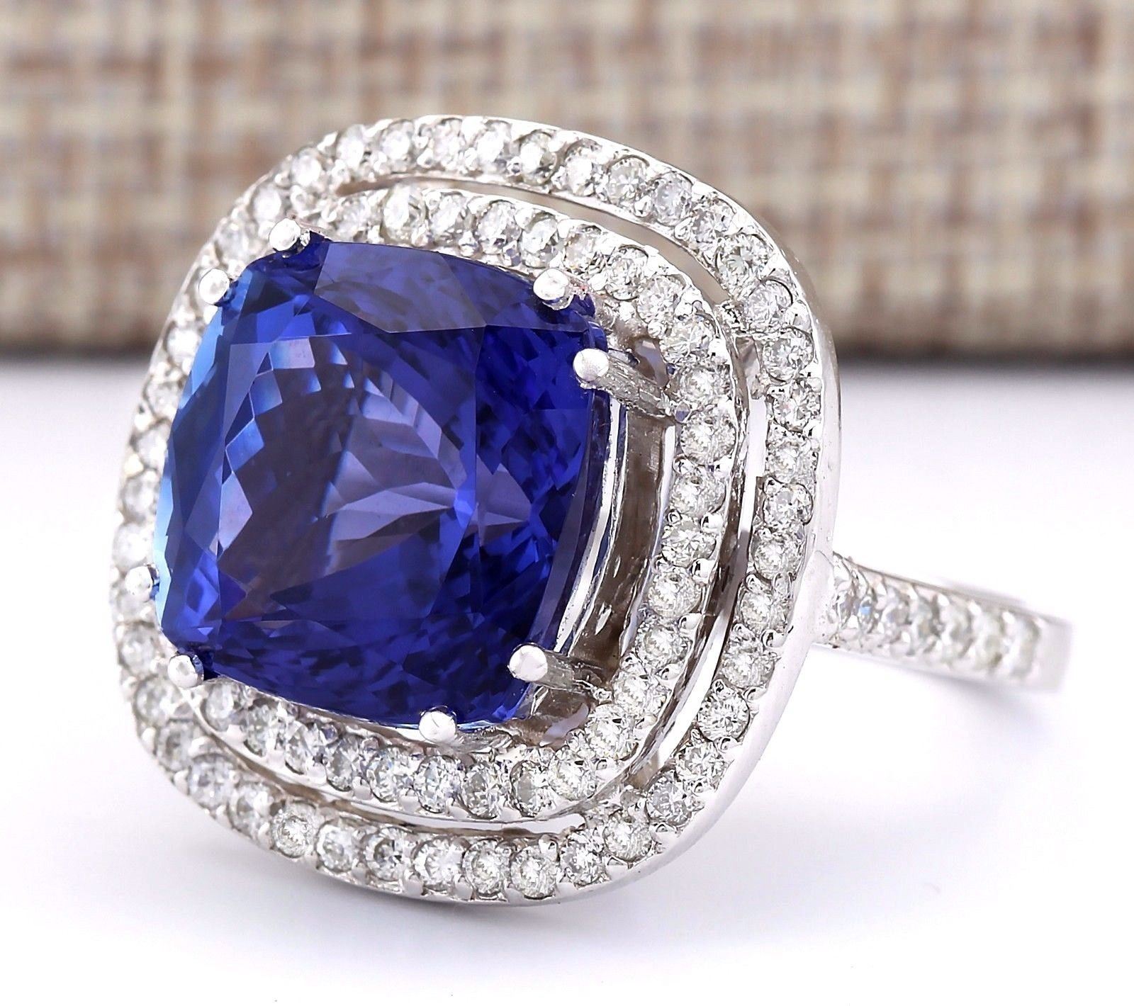 14.55 CTW Natural Blue Tanzanite And Diamond Ring 18K Solid White Gold