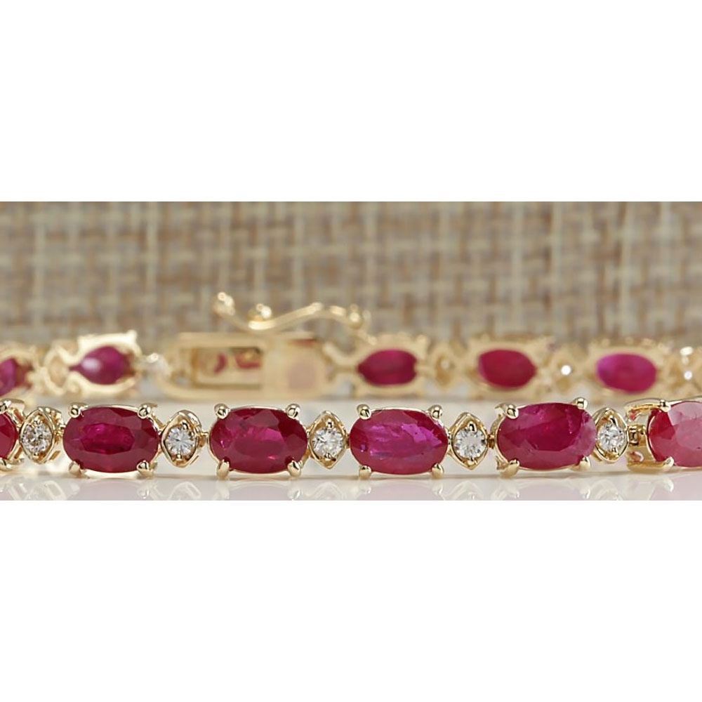 14.56CTW Natural Red Ruby And Diamond Bracelet In 14K Yellow Gold