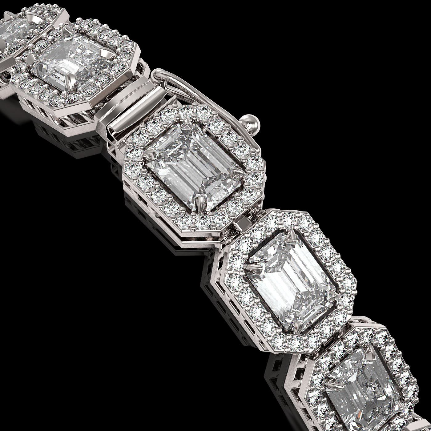 REF-3045H6A -42662 ---- 14.57 CTW Emerald Cut Diamond Designer Bracelet 18K White Gold ---- Luxury Designer Brand Bracelet Appraised at $134,000 Certificate Number US42662 18K White gold, Bracelet Size is 7 Inches, Bracelet measuring approx. 7 mm x 7 Inches, weighing in total approx. 20 grams. Made in the USA and is stamped 18K, Main stone 11.05 carat total weight containing 22 pieces of I-J color with VS/SI quality Emerald Cut shape cut Diamond , Stone #2 3.52 carat total weight containing 440 pieces of G-H color with VS/SI quality Round shape cut Diamond