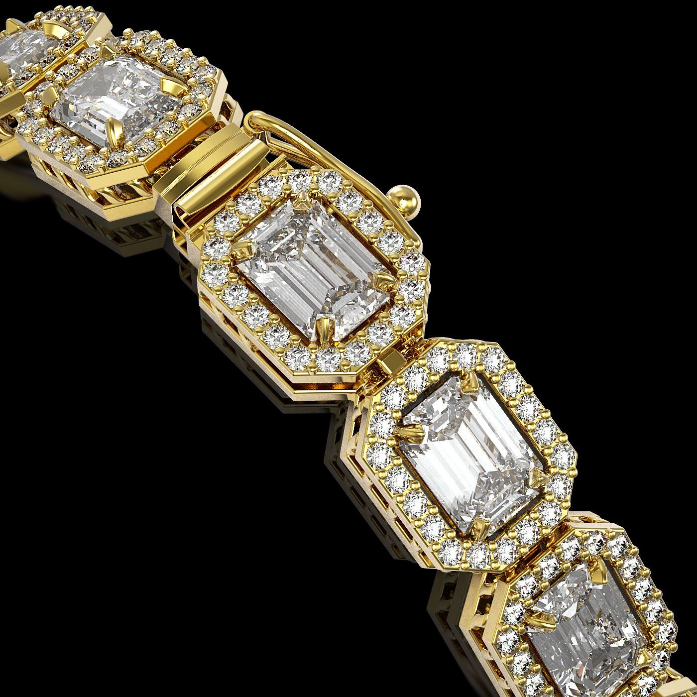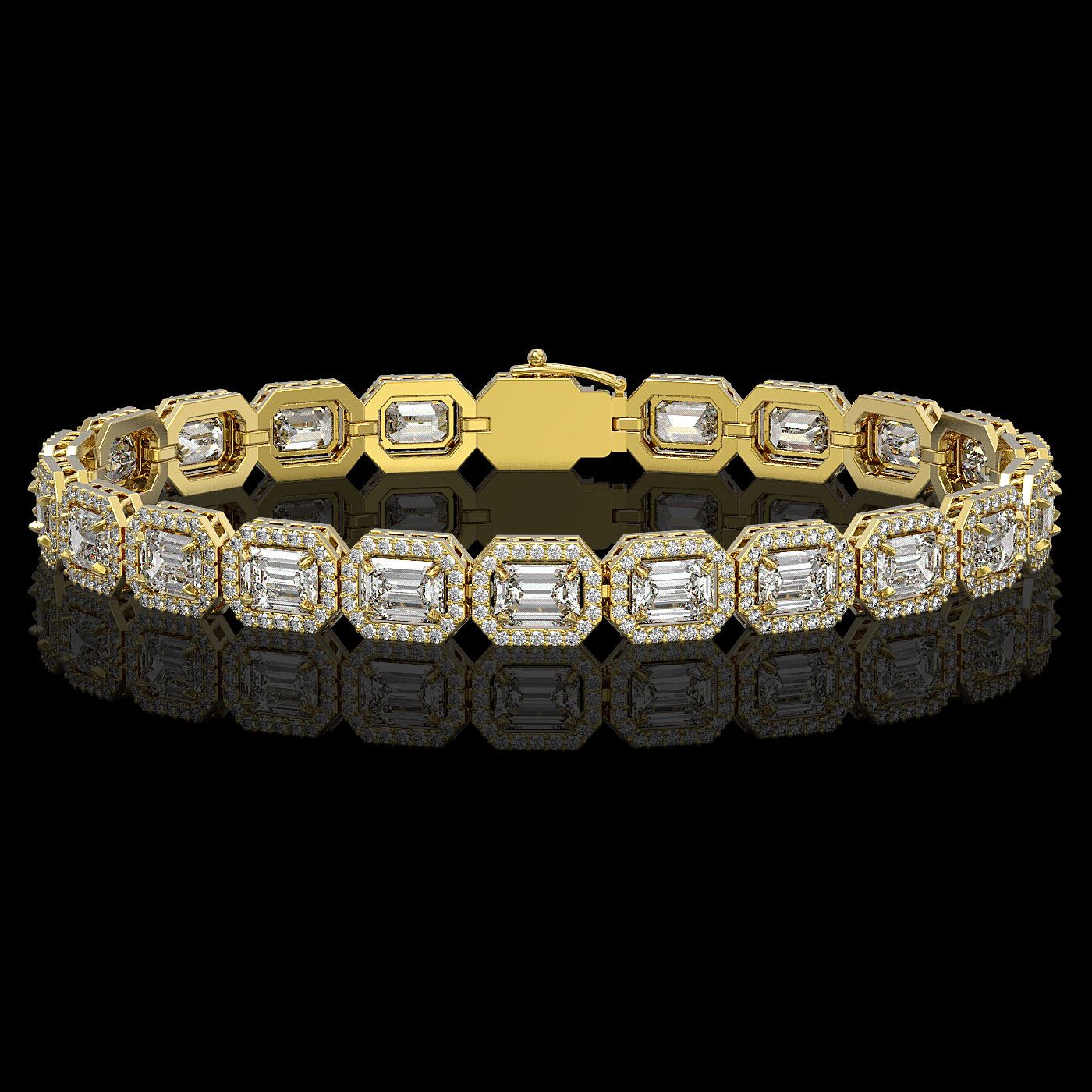 REF-3045T6M -42664 ---- 14.57 CTW Emerald Cut Diamond Designer Bracelet 18K Yellow Gold ---- Luxury Designer Brand Bracelet Appraised at $134,000 Certificate Number US42664 18K Yellow gold, Bracelet Size is 7 Inches, Bracelet measuring approx. 7 mm x 7 Inches, weighing in total approx. 20 grams. Made in the USA and is stamped 18K, Main stone 11.05 carat total weight containing 22 pieces of I-J color with VS/SI quality Emerald Cut shape cut Diamond , Stone #2 3.52 carat total weight containing 440 pieces of G-H color with VS/SI quality Round shape cut Diamond