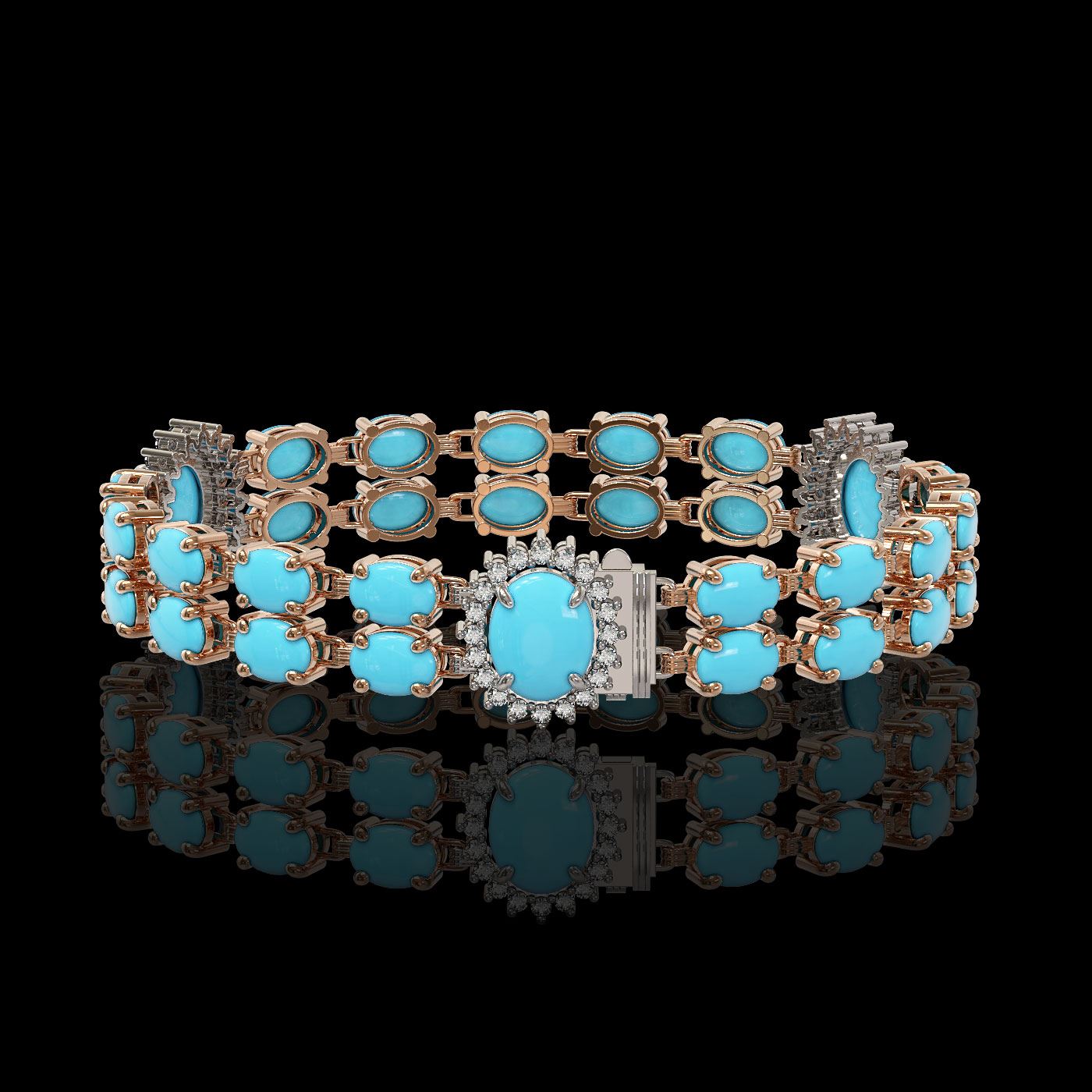 REF-254M5G - SKU: 44277 ---- 14.58 ctw Turquoise & Diamond Bracelet 14K Rose Gold