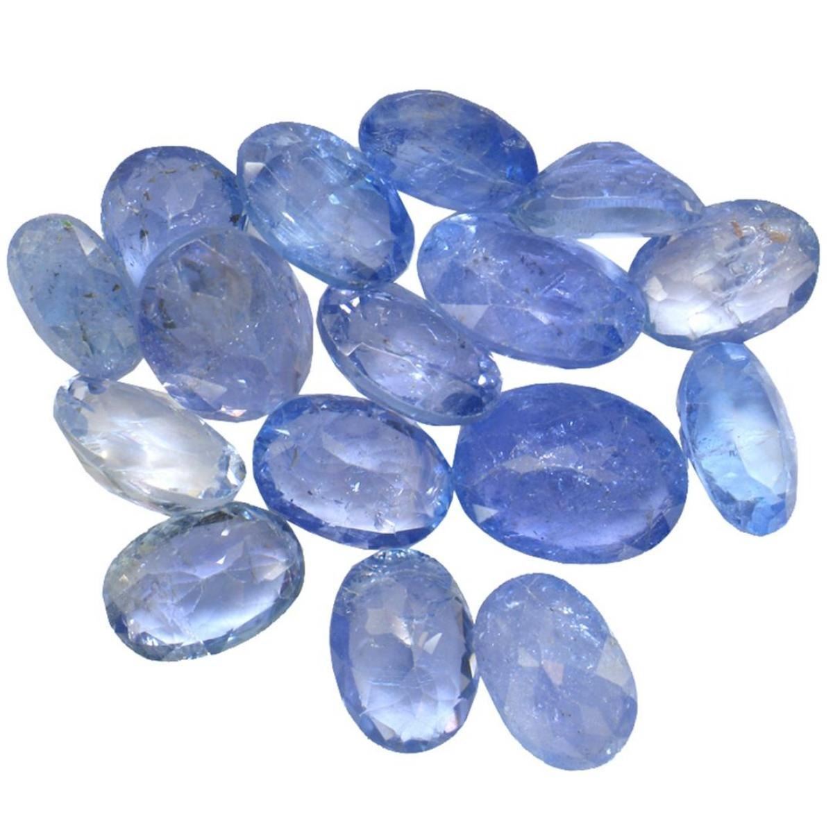 Fifteen pear and oval mixed cut natural tanzanites exact total weight 14.60ct., clarity is moderately included, type I, medium dark, very slightly grayish, bluish violet color, (GIA bV 6/3), cut is good. Transmitting light with a minimum of distortion, transparent. Naturally occurring internal & external characteristics are present. Color grade is an average for the group. Tanzanite is a very rare gemstone that is only found in the country of Tanzania. Originally discovered in 1967. Tiffany & Company, named the stone Tanzanite. It is found in the Usumburu Mountains that border the Umba Valley of northern Tanzania. Tanzanite occurs in gray, brown, violet, blue, reddish-purple, & green. The gem is interesting because of its exceptional pleochroism. Rotated in different directions a tanzanite will exhibit multiple changes of color. Tanzanite has a low tolerance to ultrasonic cleaning, and should not be cleaned using this method. Westfield Appraised.
