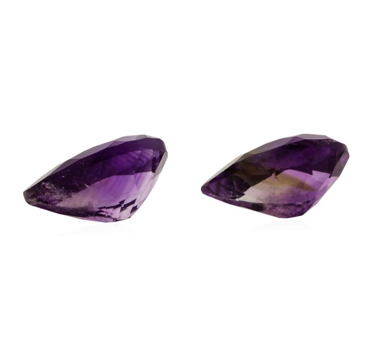 One natural pear cut amethyst parcel of two with an exact weight of 14.63ctw., clarity is slightly to moderately included, purple to v.s. brownish purple, medium light. Gemological Appraisals Services estimates the retail value at $365.75 GAS Appraised.