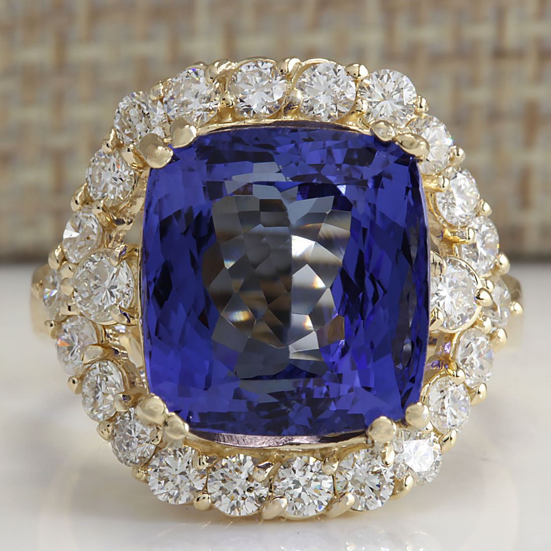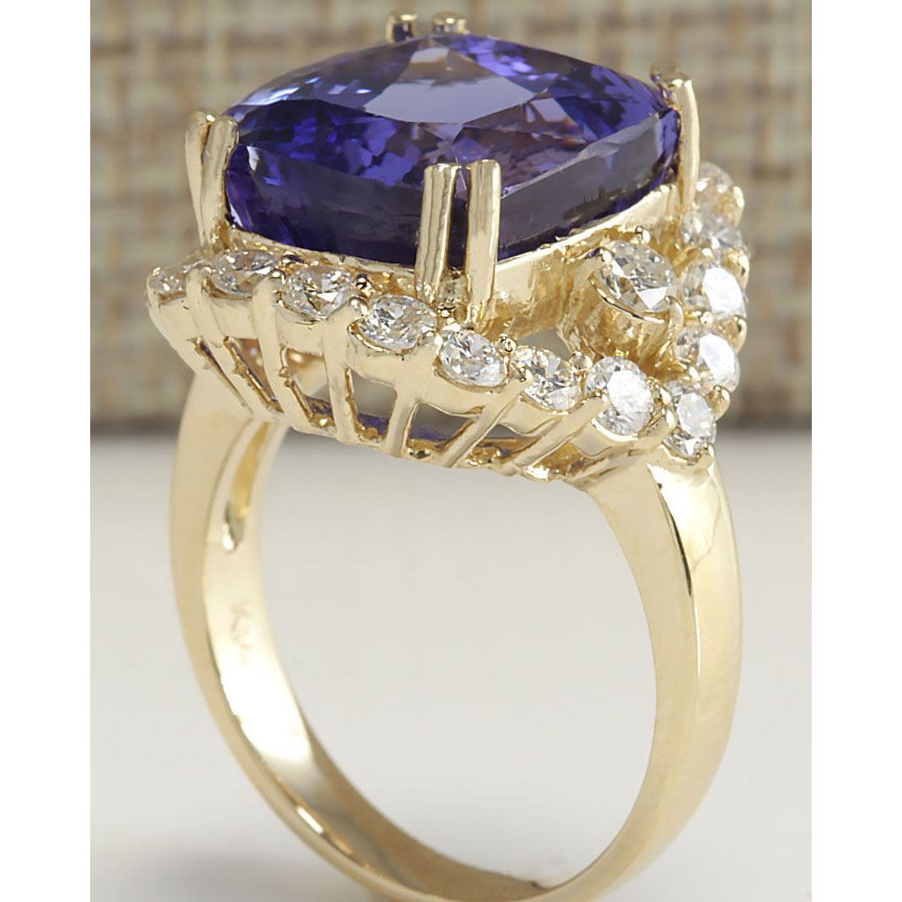 14.68 CTW Natural Blue Tanzanite And Diamond Ring In 18K Yellow Gold