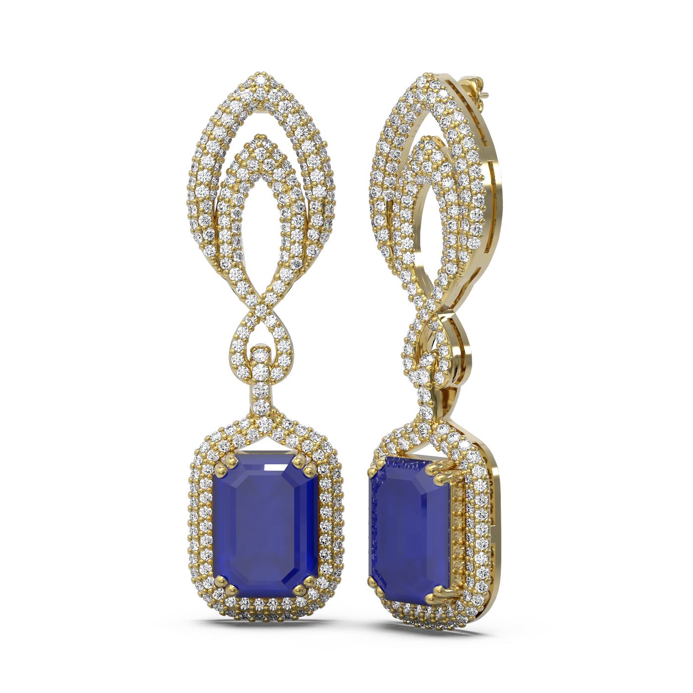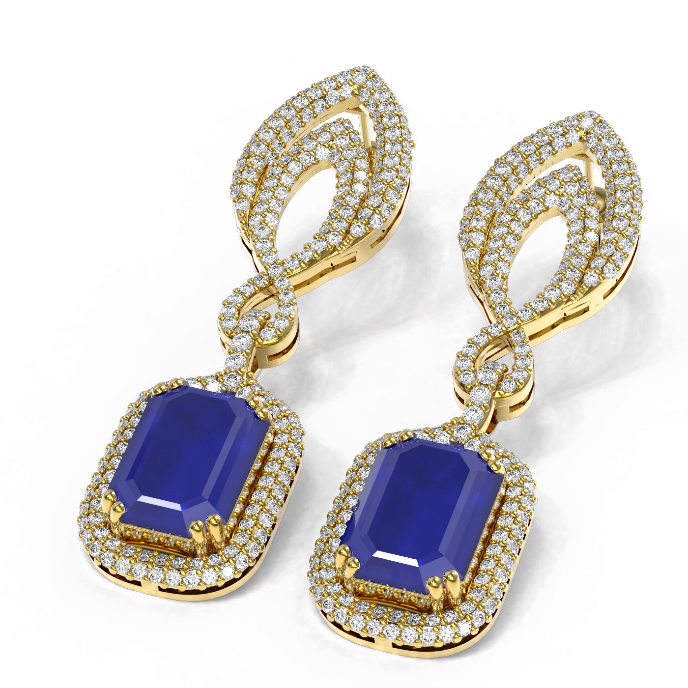 REF-445X5A - SKU: 52410 ---- 14.72 ctw Sapphire & Diamond Earrings 18K Yellow Gold