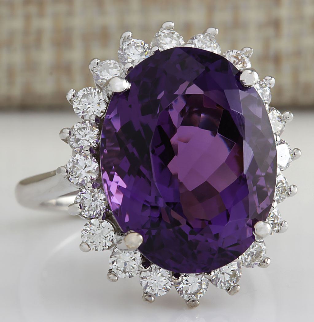 14.72CTW Natural Amethyst And Diamond Ring In 14K Solid White Gold