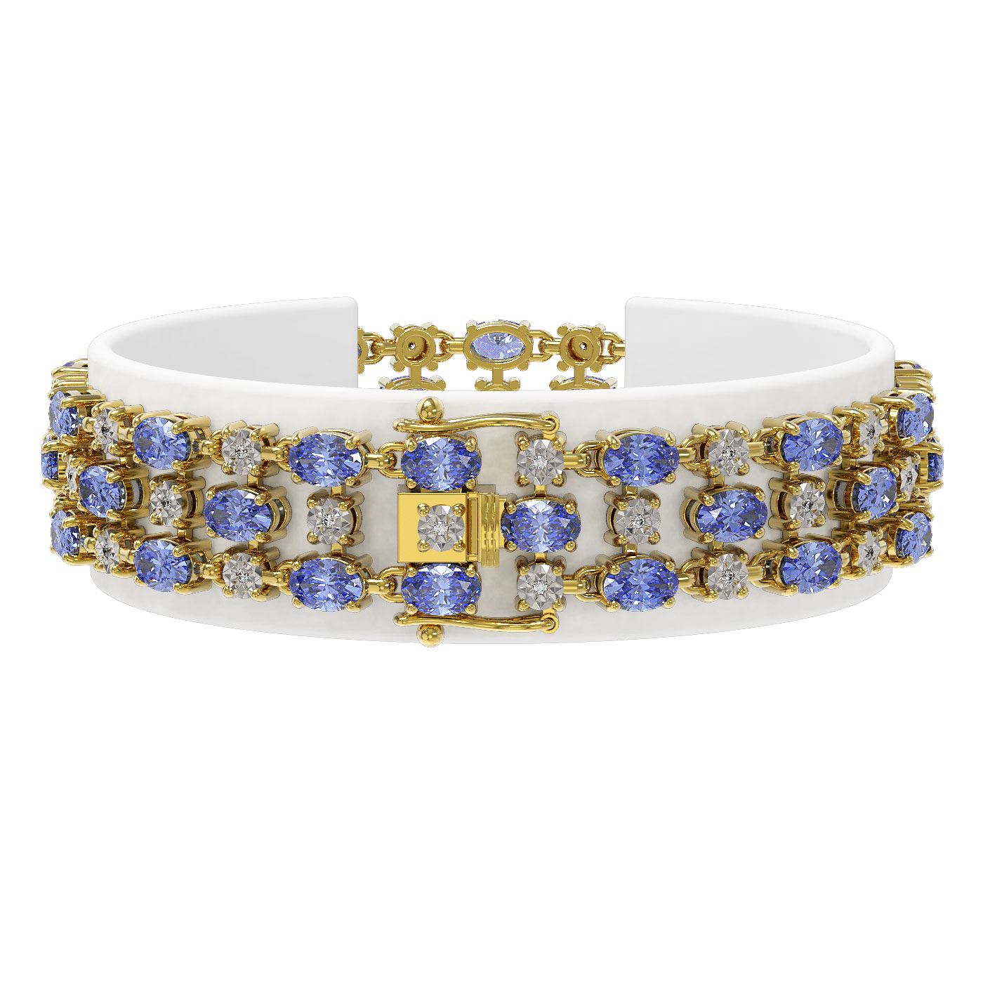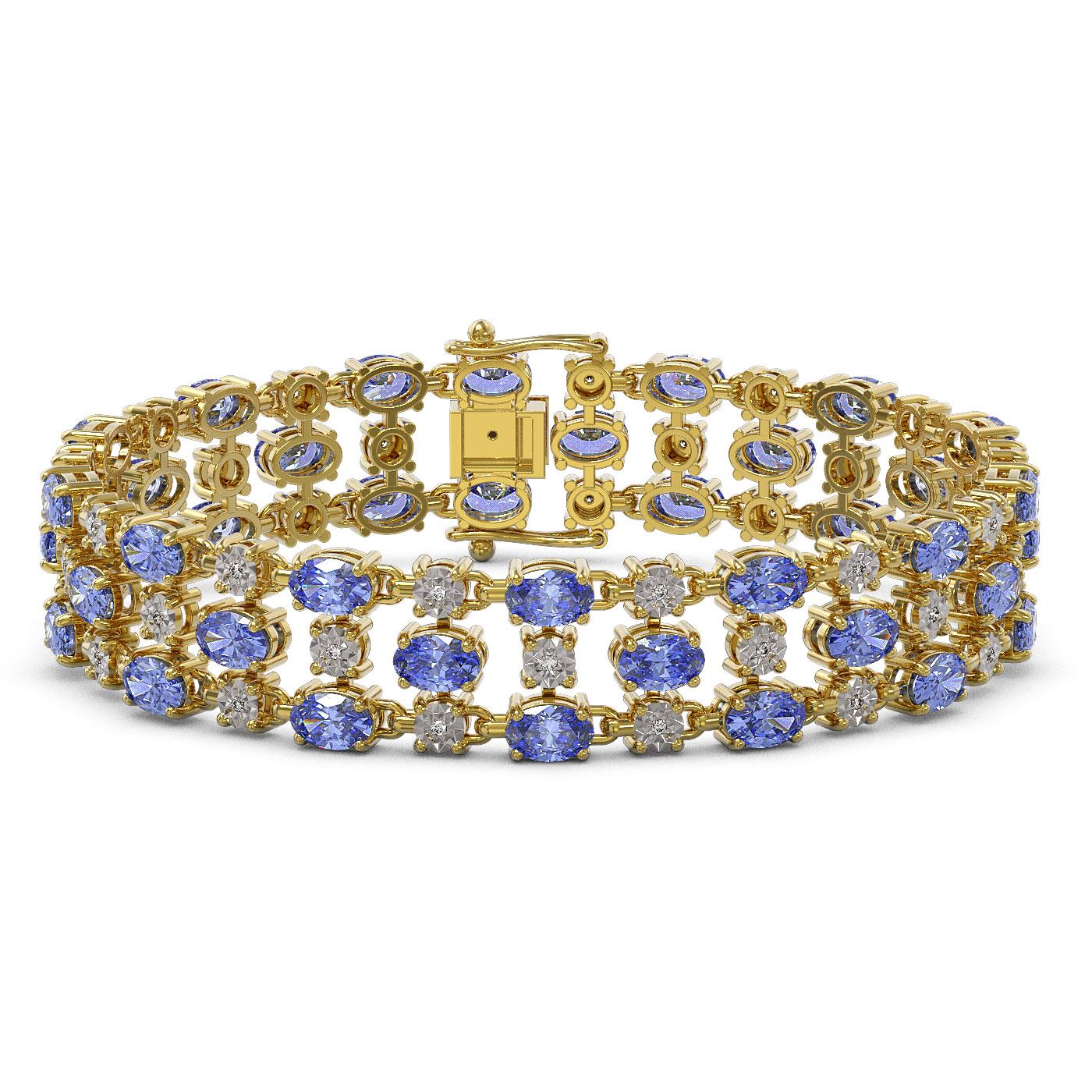 14.8 ctw Tanzanite & Diamond Row Bracelet 10K Yellow Gold