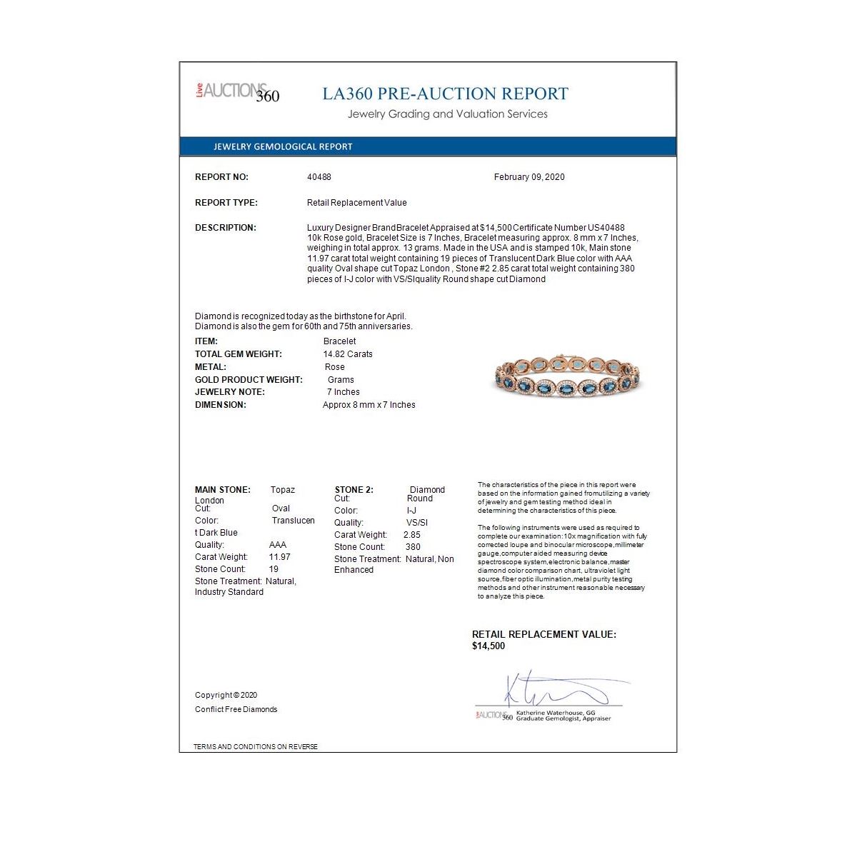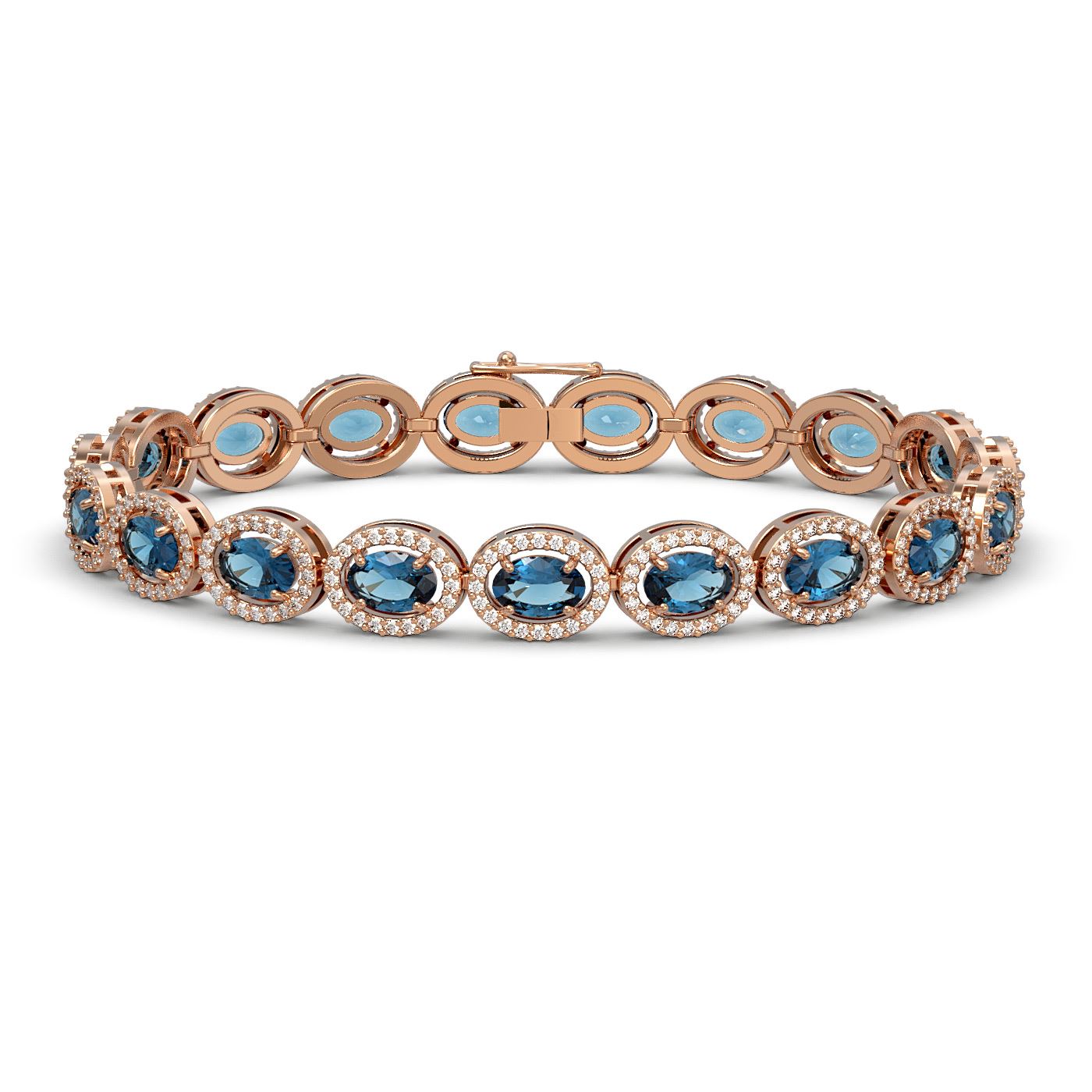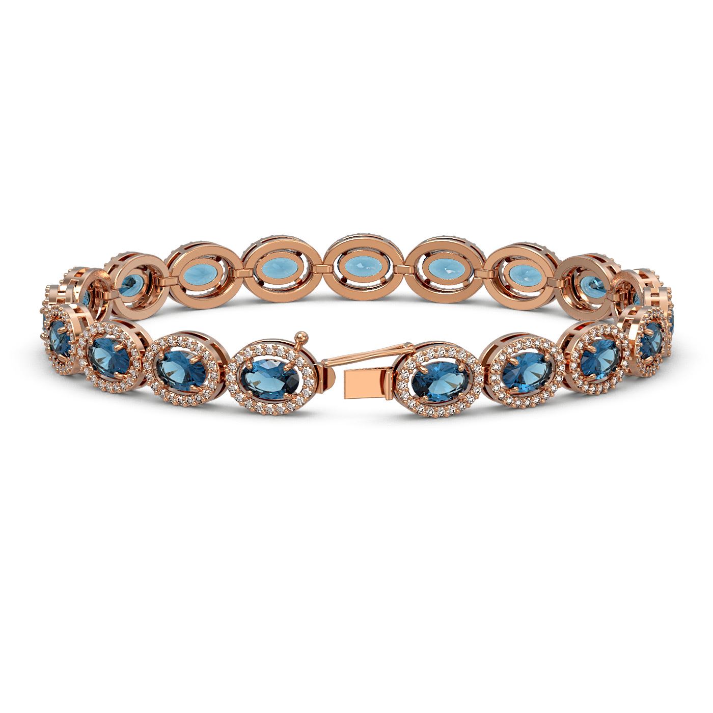 REF-263M6G - SKU: 40488 ---- 14.82 ctw London Topaz & Diamond Micro Pave Halo Bracelet 10k Rose Gold