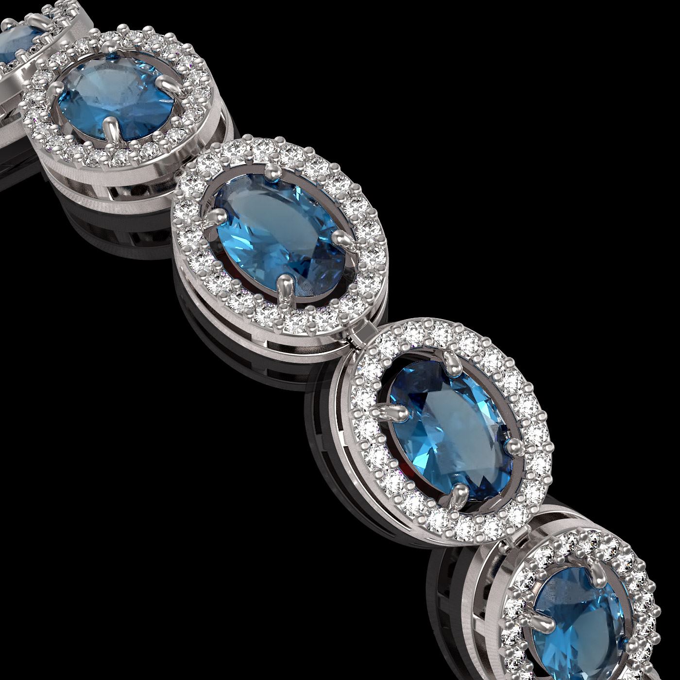REF-263H6R - SKU: 40487 ---- 14.82 ctw London Topaz & Diamond Micro Pave Halo Bracelet 10k White Gold