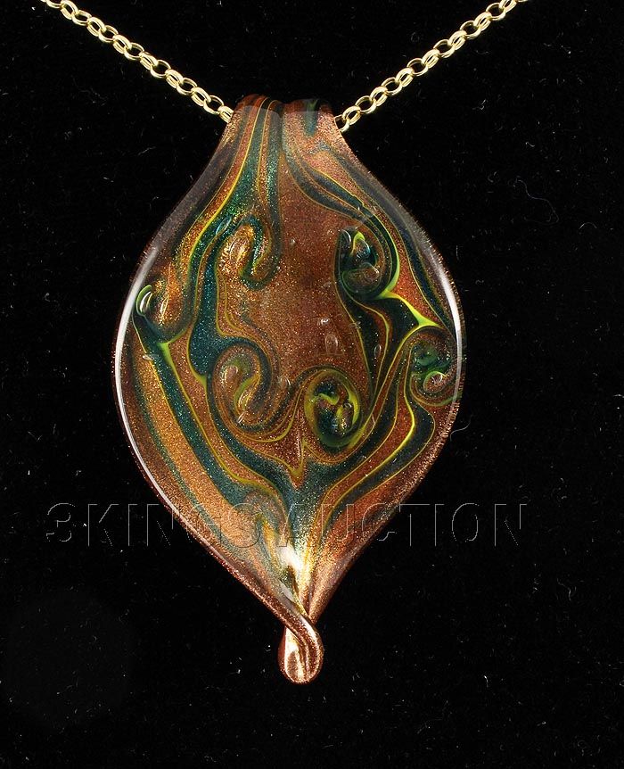 14.82GRAMS GLITTER QUARTZ GLASS FILLED LEAF PENDANT **|**|** 2.45X1.51 INCHES GOLD & GREEN GLITTER QUARTZ IN GLASS FILLED LEAF PENDANT ; MSRP: $300