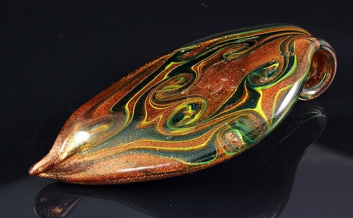 14.82GRAMS GLITTER QUARTZ GLASS FILLED LEAF PENDANT **|**|** 2.45X1.51 INCHES GOLD & GREEN GLITTER QUARTZ IN GLASS FILLED LEAF PENDANT ; MSRP: $300