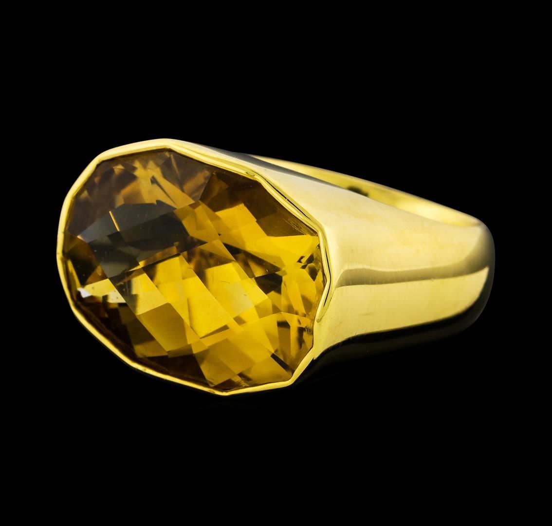 One ring featuring: 18KT Yellow Gold containing Citrine with a total weight of 14.85ct. Total Weight of Ring: 17.8 grams.