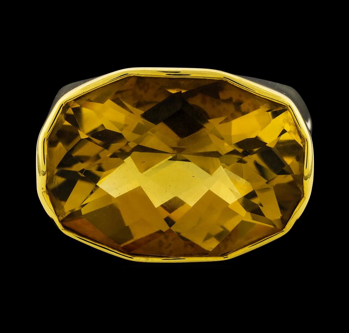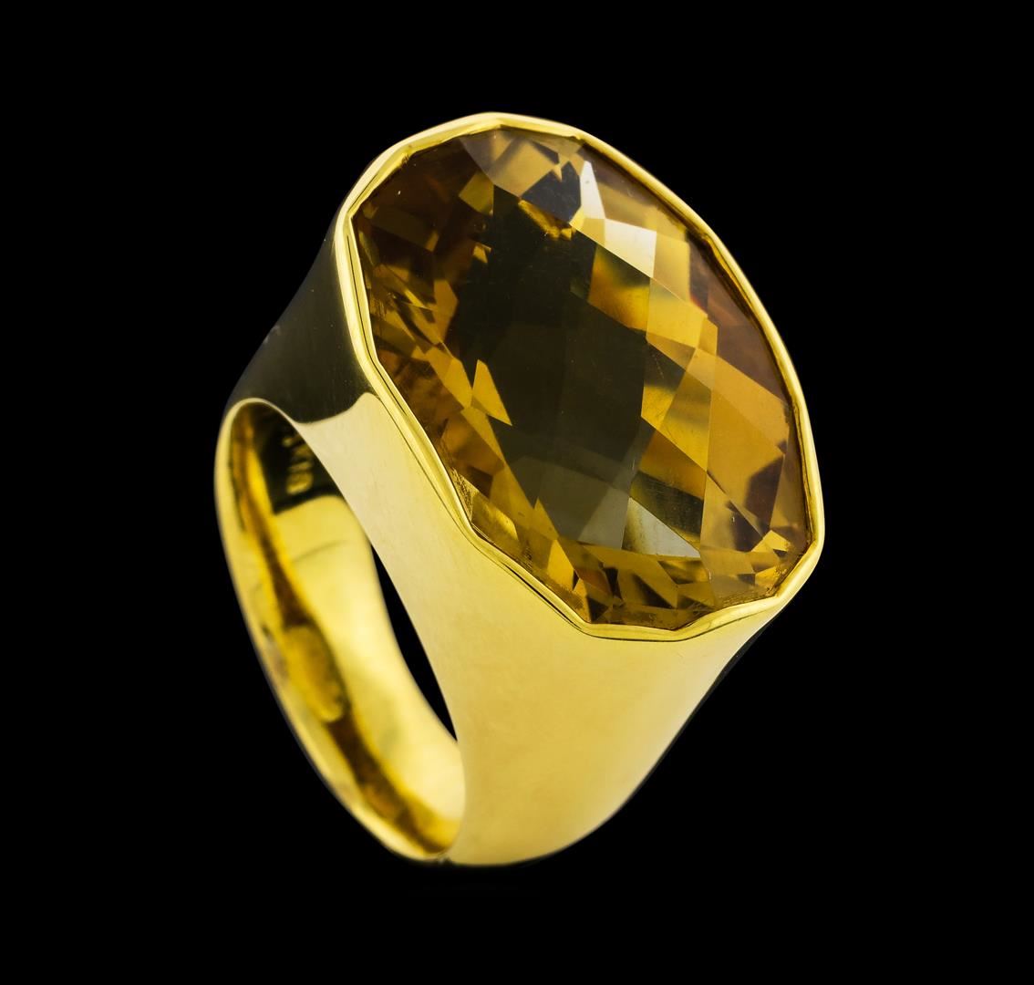 One ring featuring: 18KT Yellow Gold containing Citrine with a total weight of 14.85ct. Total Weight of Ring: 17.8 grams.
