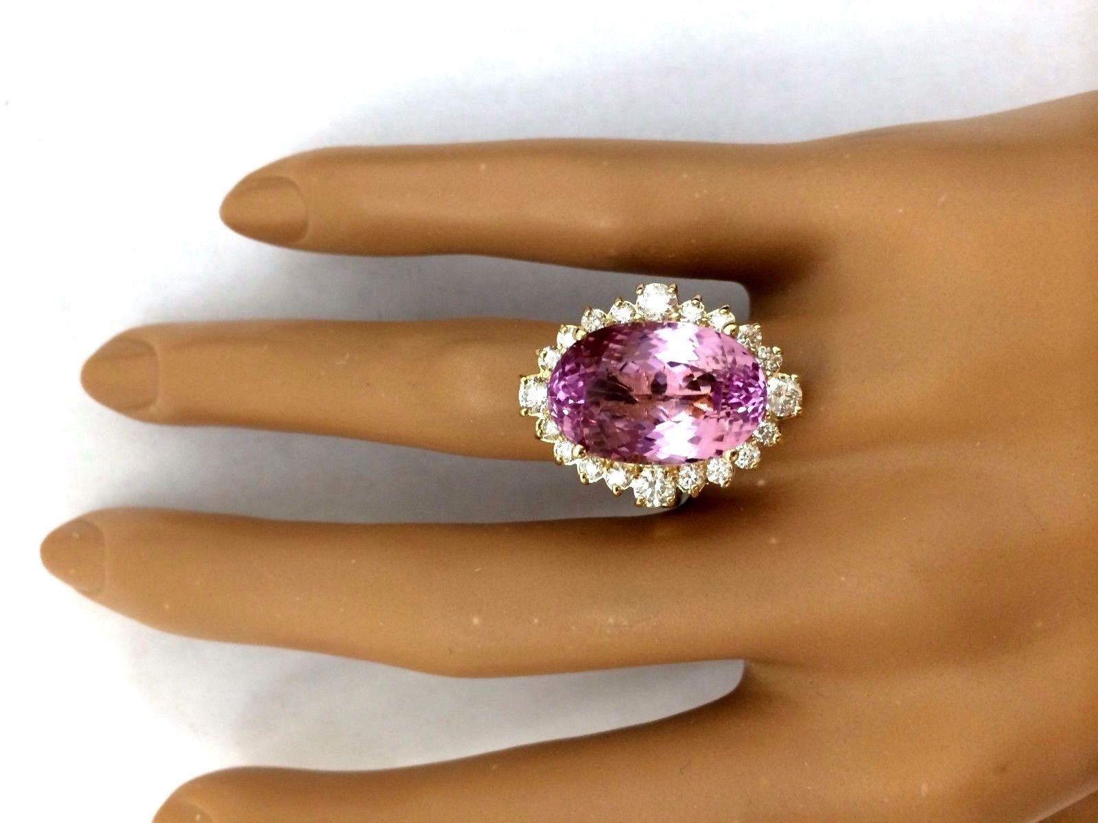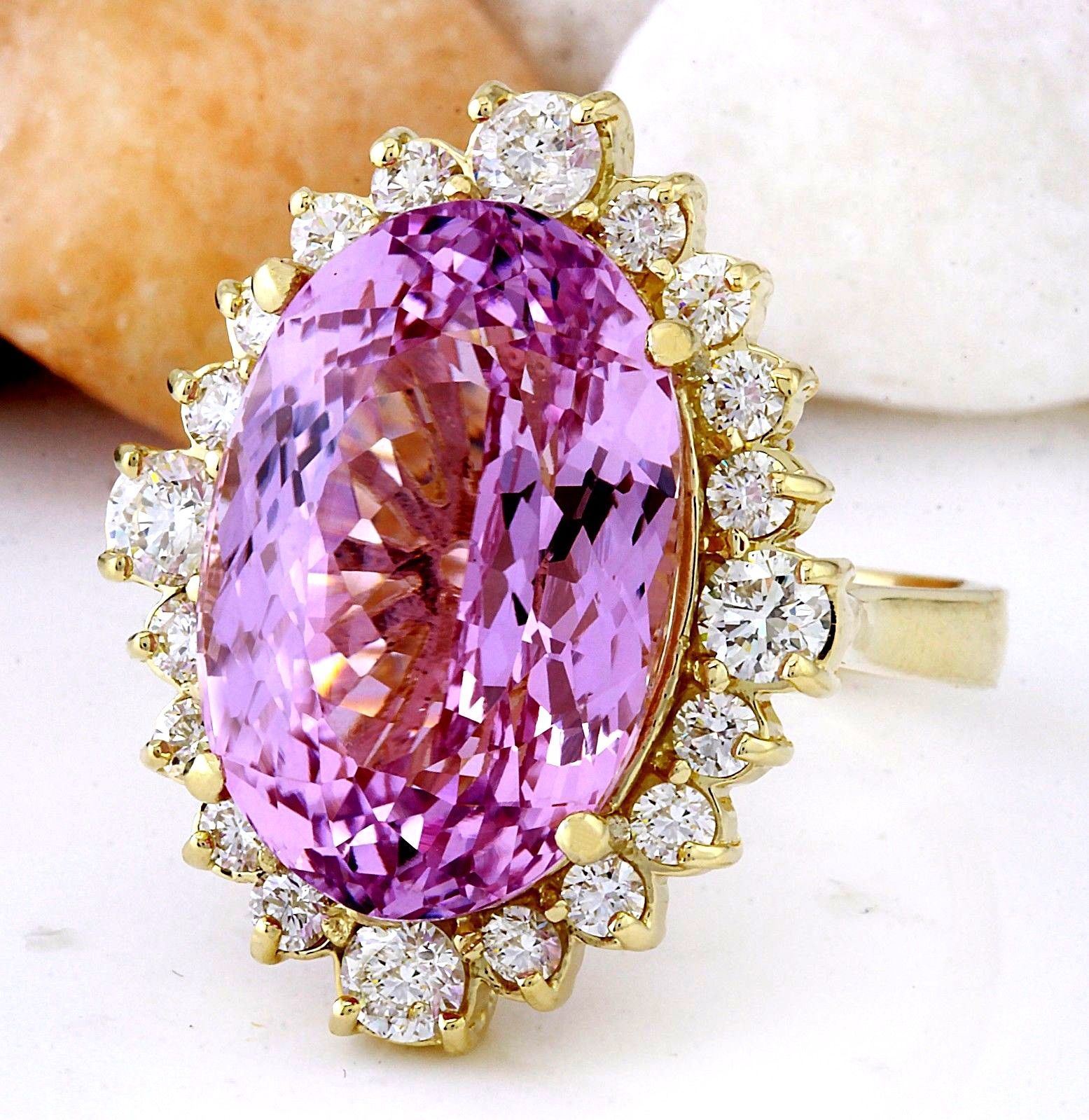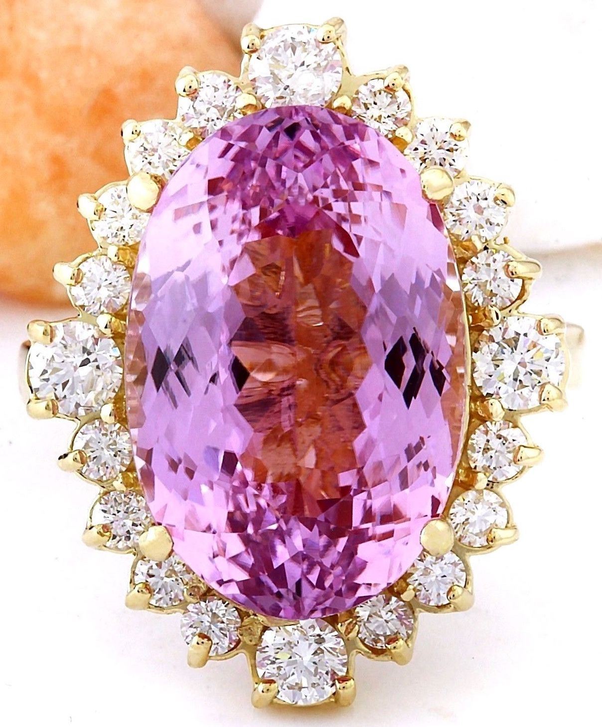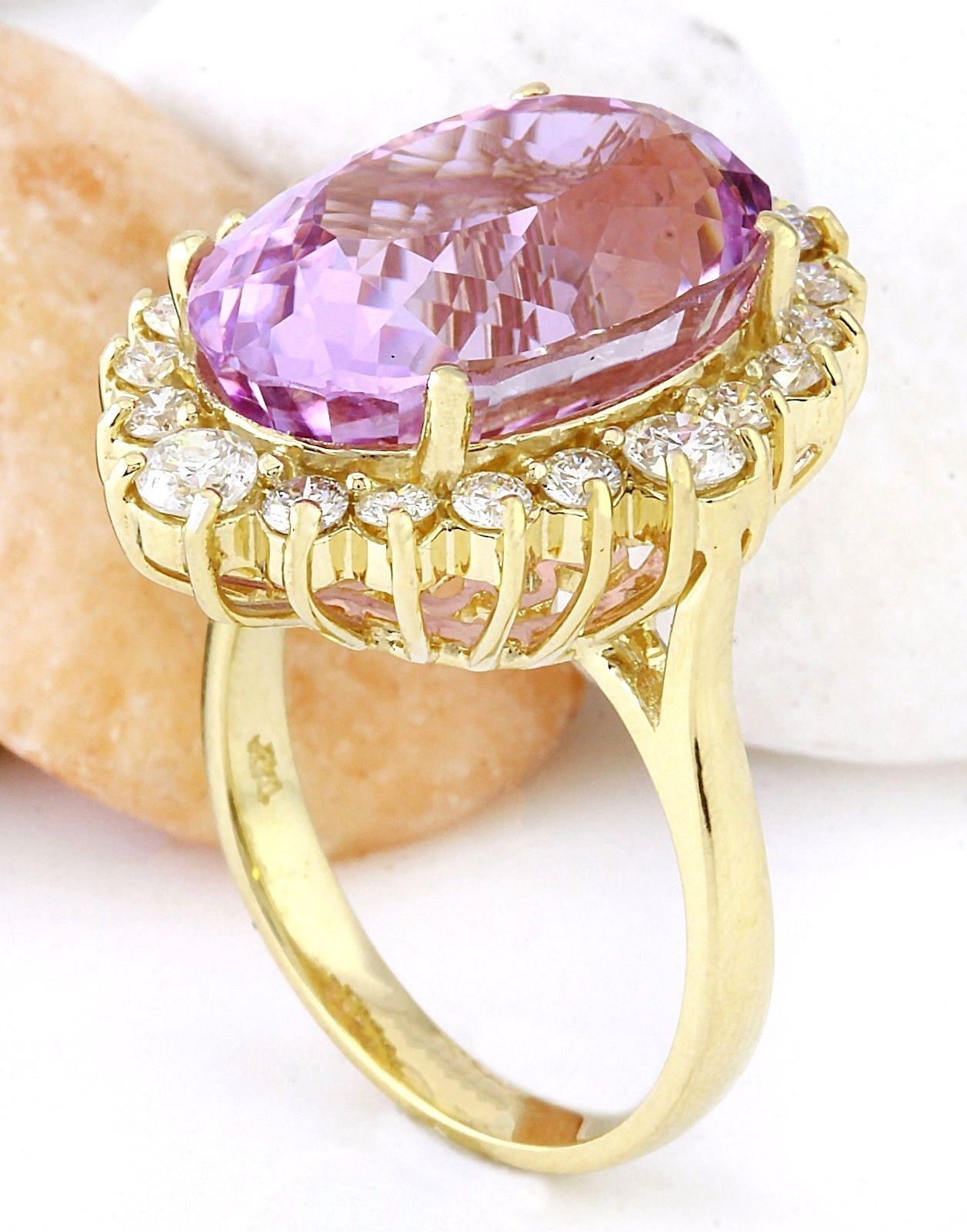 14.90 Carat Natural Kunzite 18K Solid Yellow Gold Diamond Ring