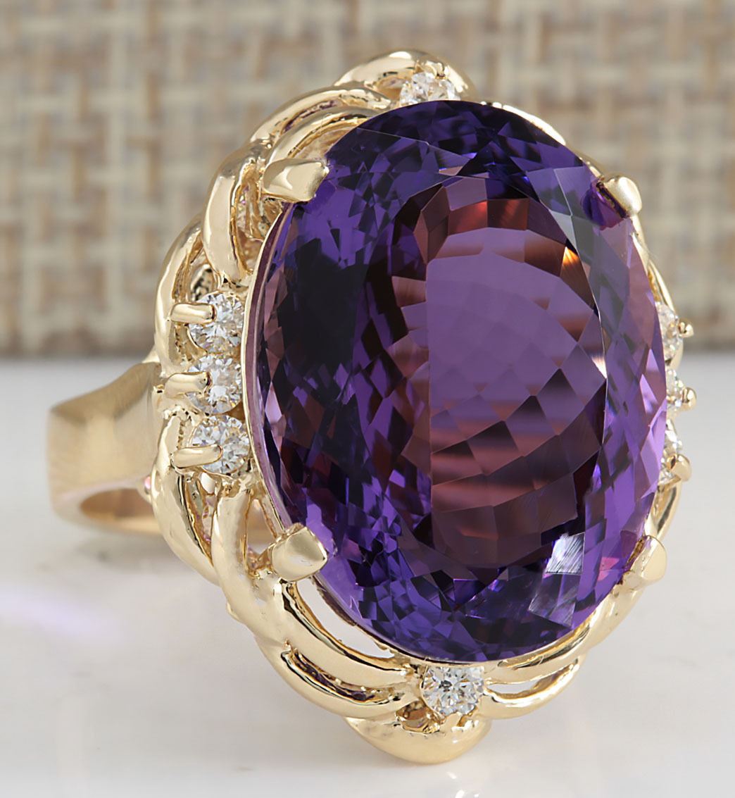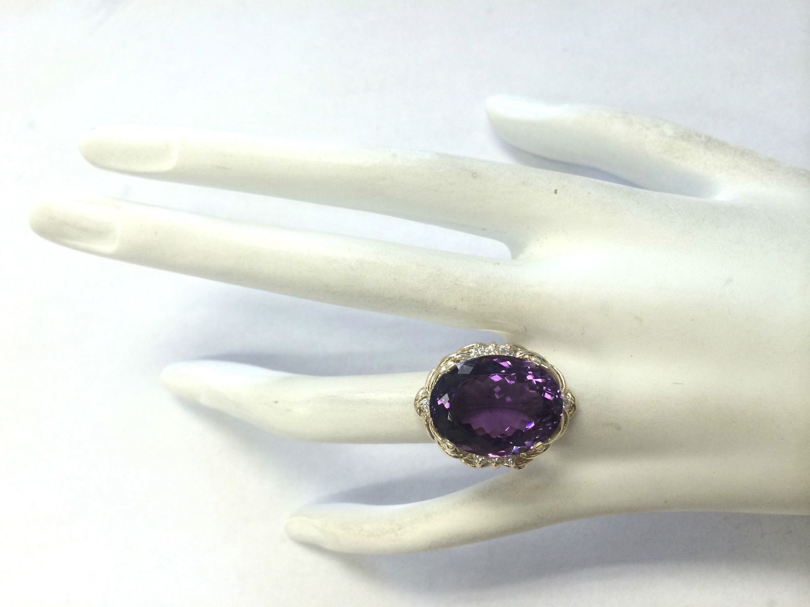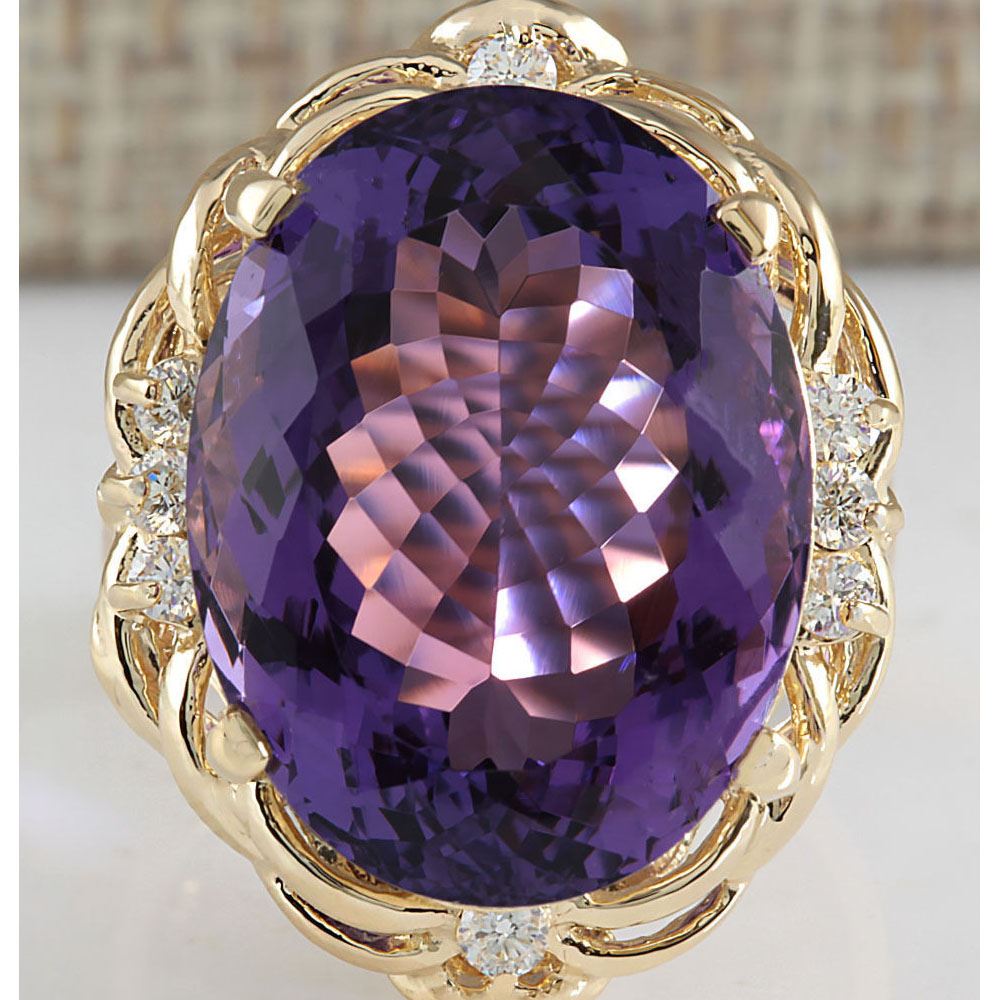 14.91 CTW Natural Amethyst And Diamond Ring 14K Solid Yellow Gold