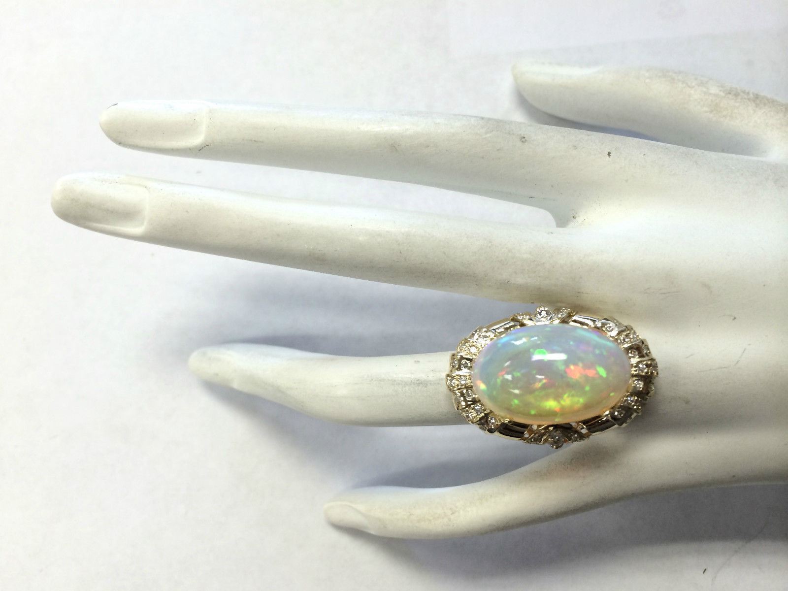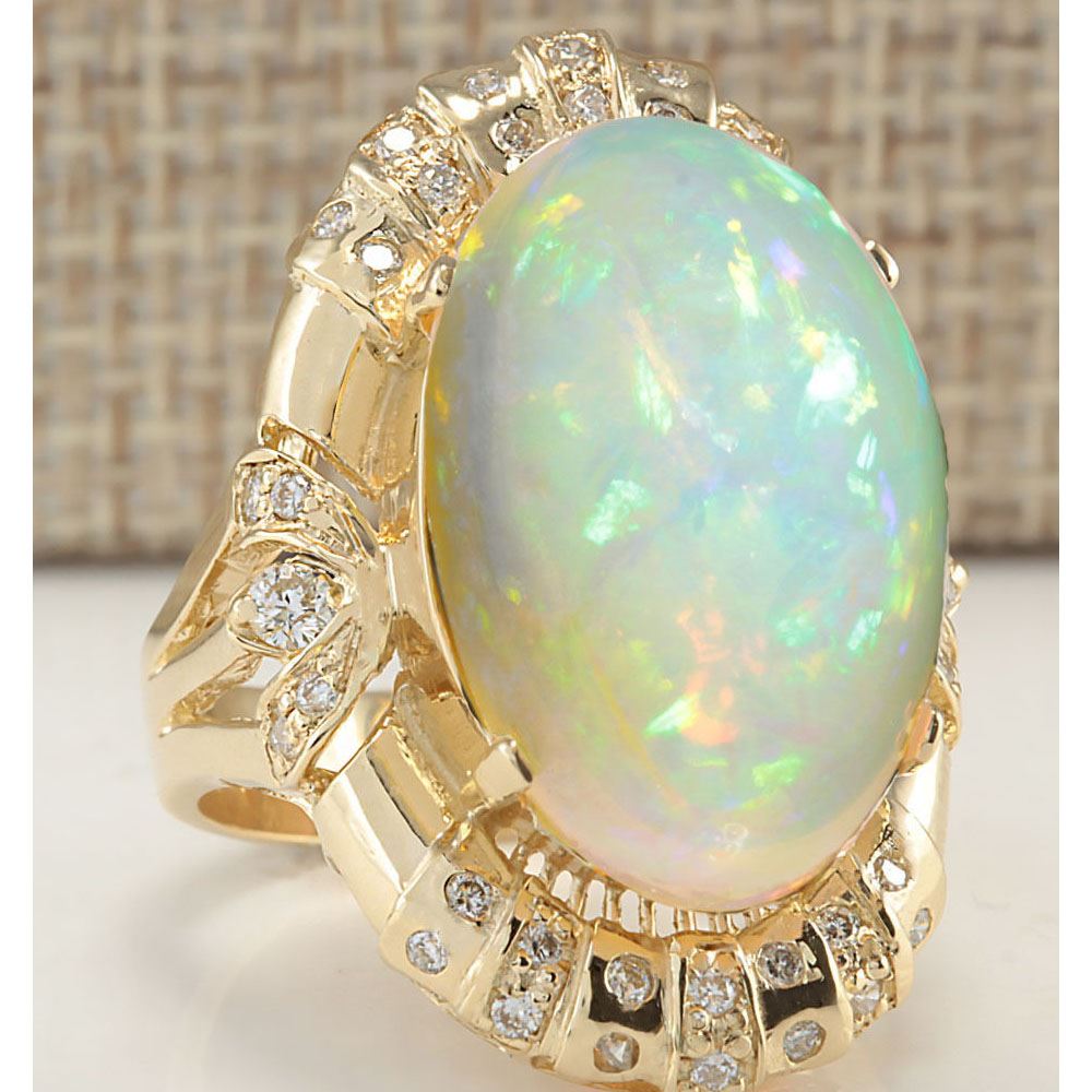 14.98 CTW Natural Opal And Diamond Ring In 18K Yellow Gold