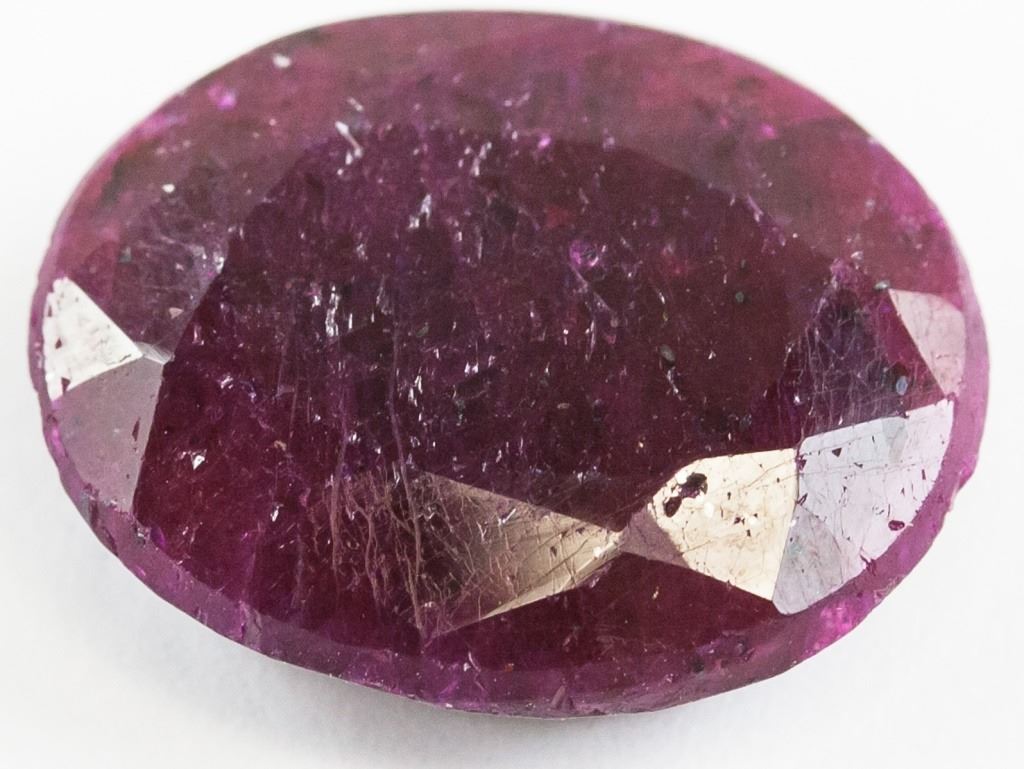One (1) 14.98 ct oval cut red natural ruby. Accompanied with IDT certificate. 5.53 x 14.30 x 16.90 mm.