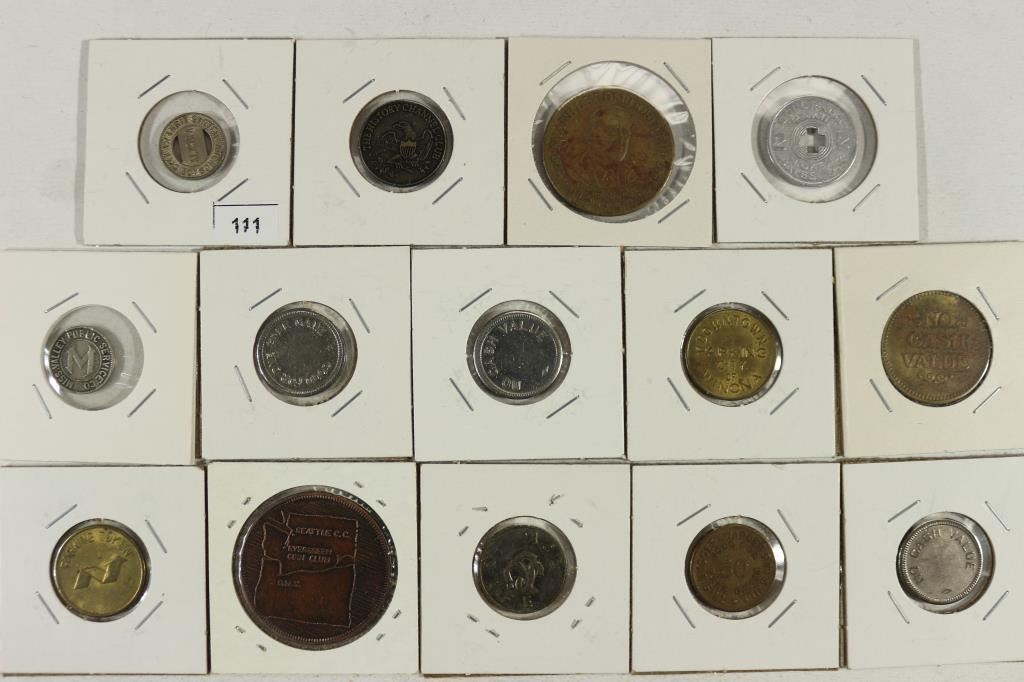 14 ASSORTED VINTAGE TOKENS