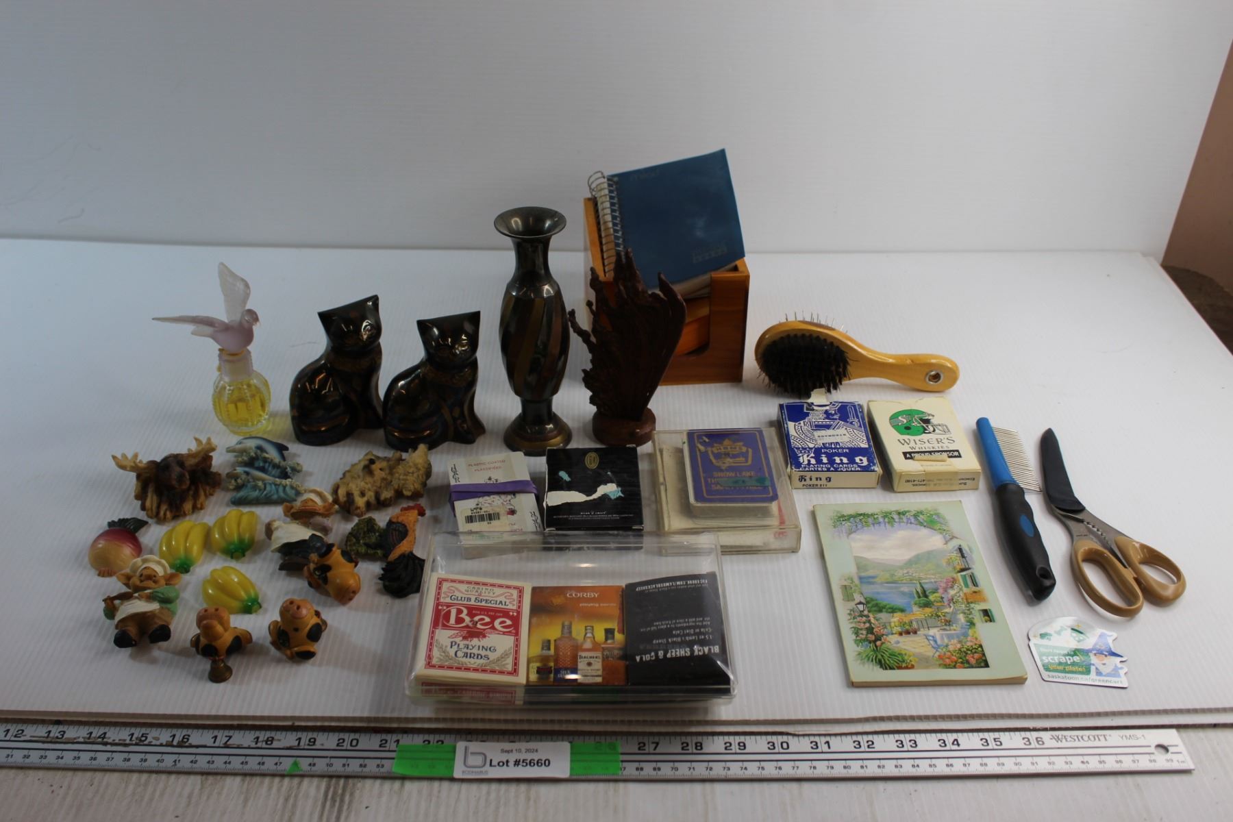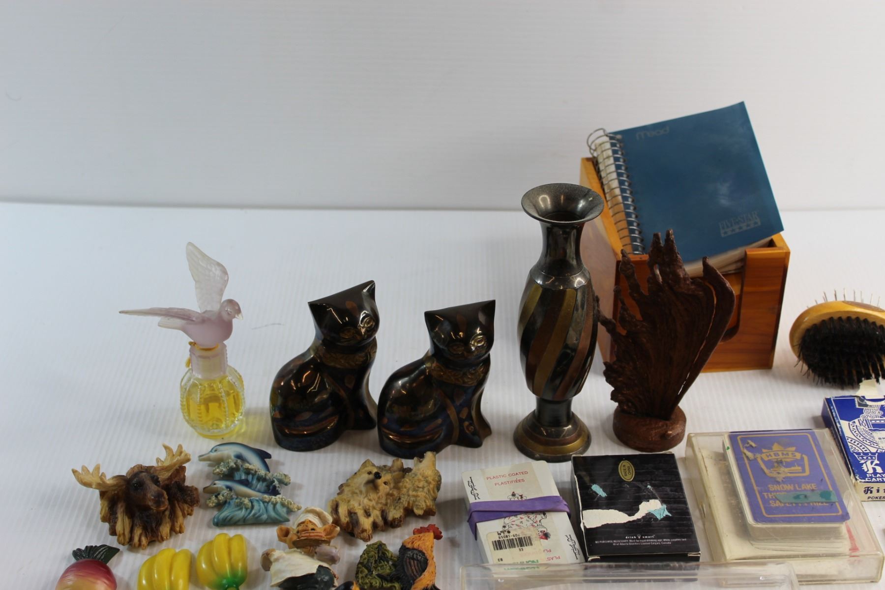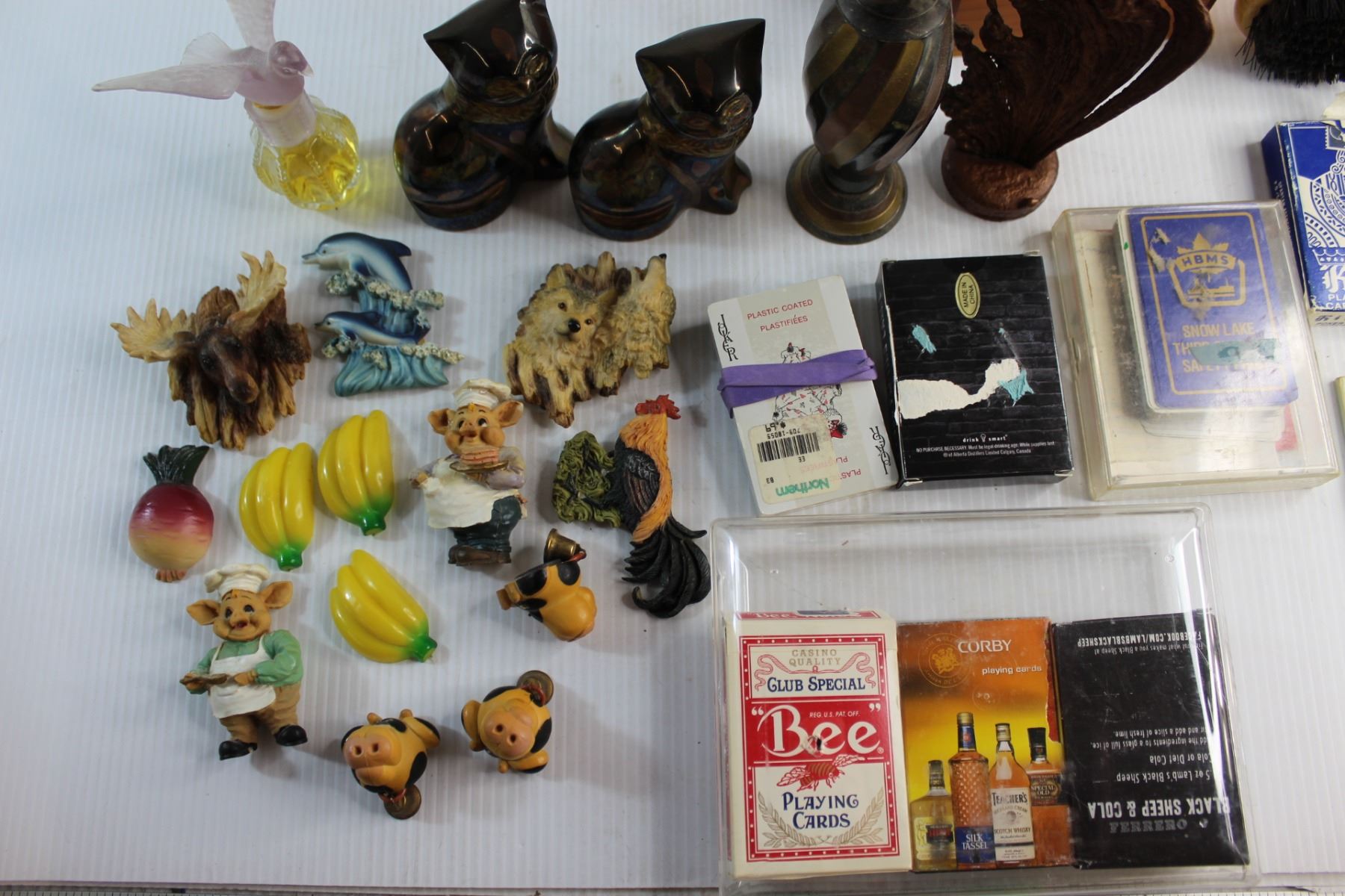 (14) Assorted Magnets, (8) Assorted Playing Cards, Perfume, Vase and Assorted Items