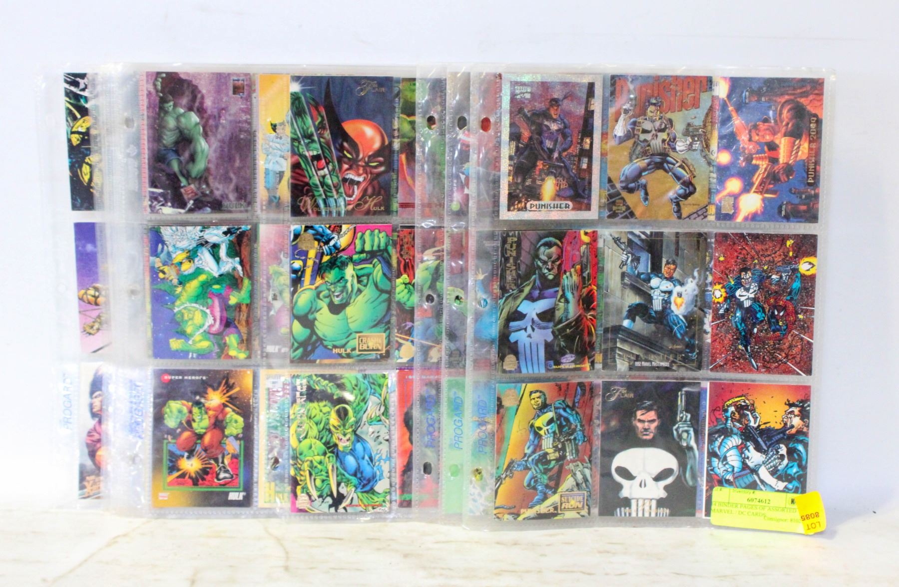 14 BINDER PAGES OF ASSORTED MARVEL / DC CARDS
