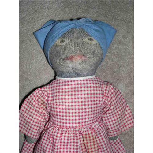 14" Black Cloth Doll with Blue Bandana. Doll is cotton stuffed. She has old appropriate cotton dress and blue bandana. Doll comes from a smoke free environment. Buyer to pay $15 for shipping, handling, and insurance. Thank you fo viewing.