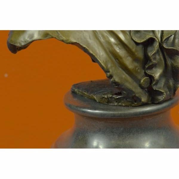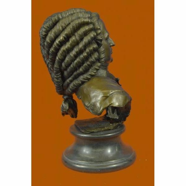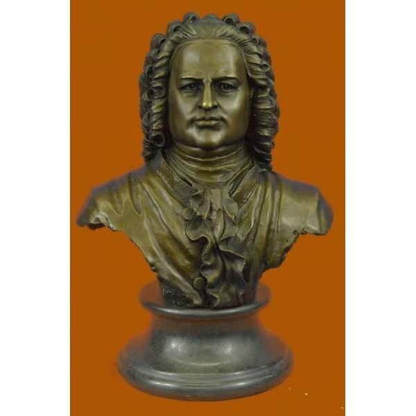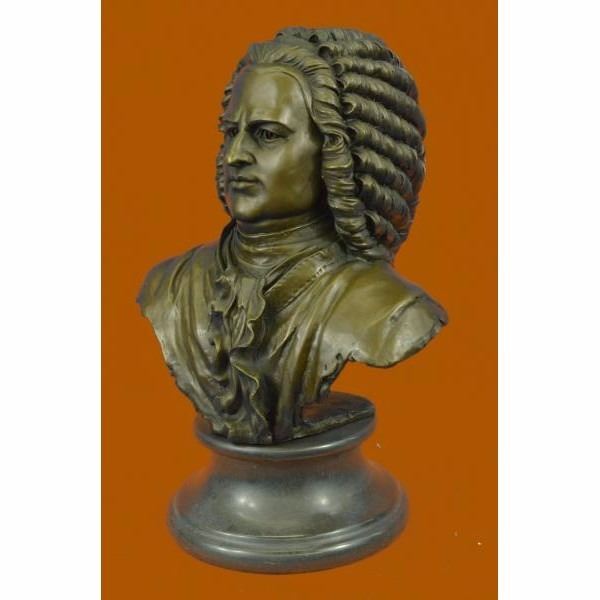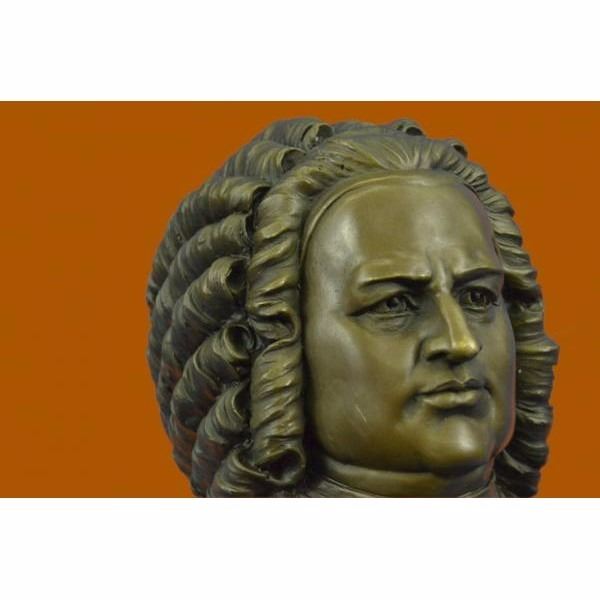 Johann Sebastian Bach was a German composer, organist, harpsichordist, and violist, and his music is revered for its intellectual depth, technical command, and artistic beauty. This bronze statue depicts Bach with a great detail, deep in thought. Made of Hot cast real bronze,This Brown Patina Was Cast Using The "Lost Wax Method." He Is Mounted On A Black Marble Base And Is Signed by the artist Milo. Condition: This sculpture is in perfect condition. Bronze Dimensions with Marble Base:Height 14" x Width 10" Marble Dimensions: Diameter 7" Height without base: 11" Weight : 16 LBS Inventory : 57YRD8067175