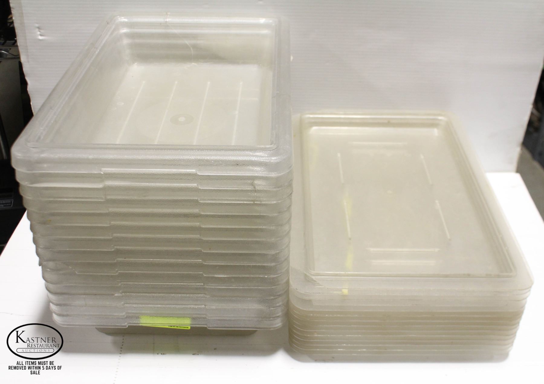 6.6L STACKING BINS. LIDS HAVE SOME CHIPS **ALL ITEMS MUST BE REMOVED BY 5PM MONDAY, JULY 3RD, 2023. ALL REMAINING ITEMS WILL BE SUBJECT TO A $6.00 PER DAY STORAGE CHARGE. ANY ITEMS REMAINING AFTER MONDAY, JULY 17TH, 2023 WILL BE CONSIDERED FORFEITED. NO REFUNDS WILL BE ISSUED FOR FORFEITED ITEMS.** TO SCHEDULE A PICK UP APPOINTMENT CLICK HERE