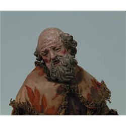 Lot # 290 14" CRECHE FIGURE. Bald man with flowing beard and sideburns. CONDITION: Clothing tattered and soiled, but still a nice example. 1-28531 (LS) (100-250)