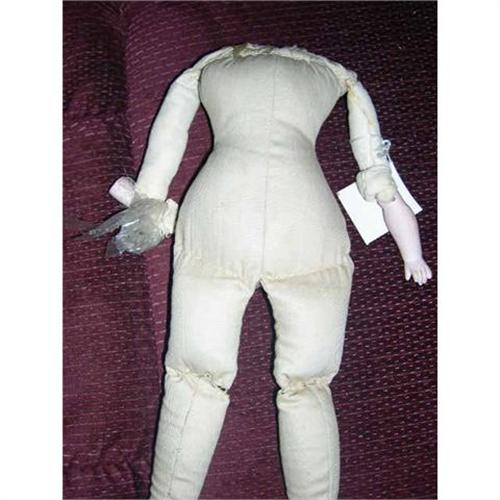 14" Cloth Doll Body With Bisque Arms( AS IS). One hand needs to be reattached. Doll comes from a smoke free environment. Buyer to pay $15 for shipping, handling, and insurance. Thanks for viewing.
