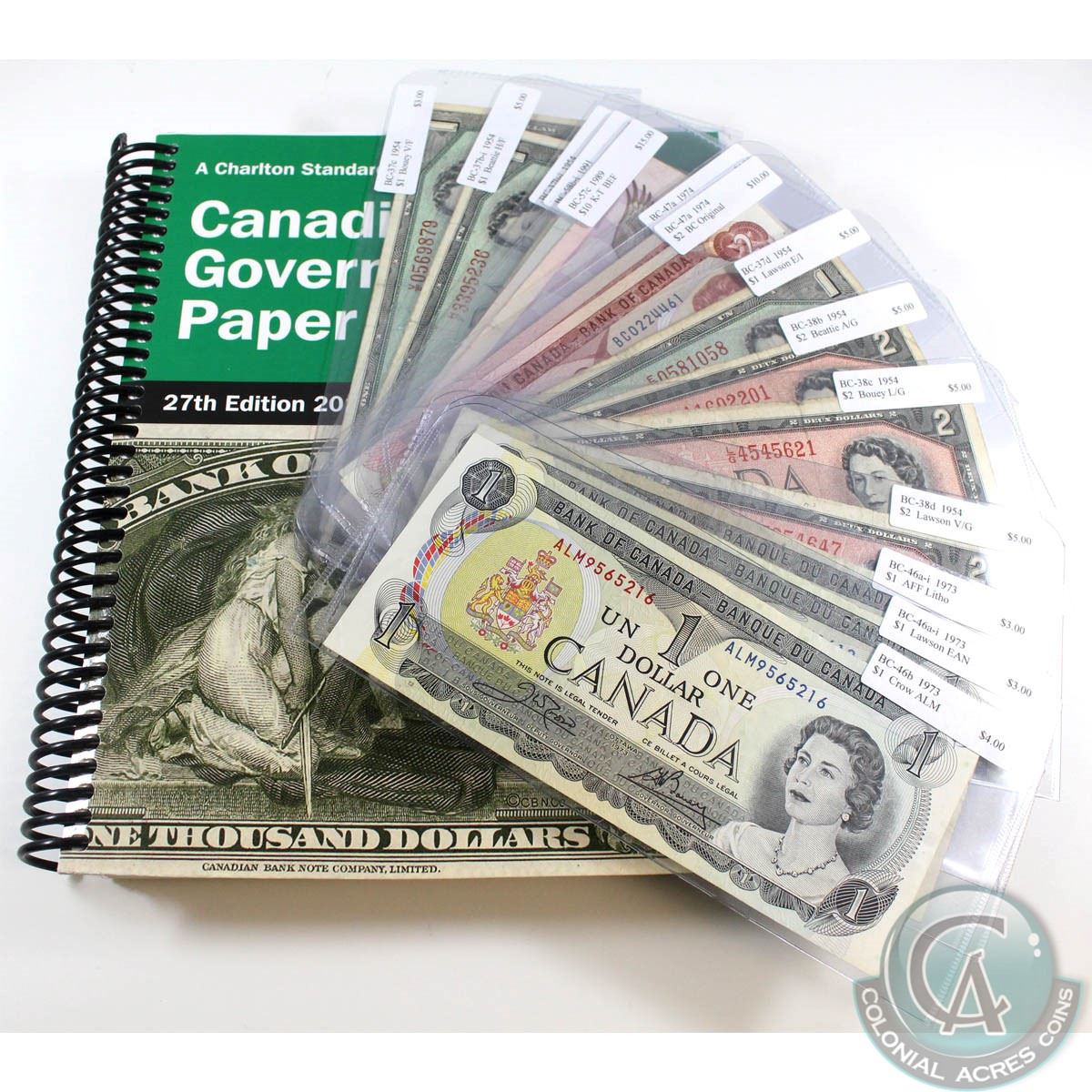 14 Different Changeover/Short Run Prefix Banknotes from the Bank of Canada. Included is a 27th Edition of the Charlton Standard Catalogue of Canadian Government Paper Money. 14pcs & book