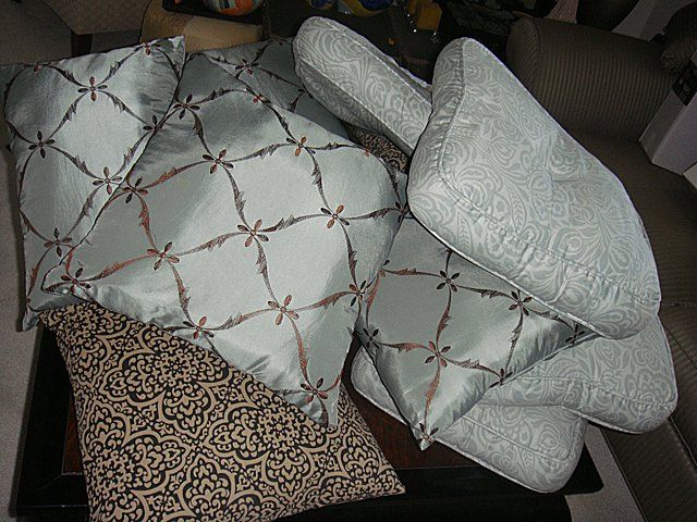 14 Estate Decorative/Designer Pillows in very, very nice conditions. Some appear to be silk fabric with decoration on them. Very nice quality pillows from non-smoking home.