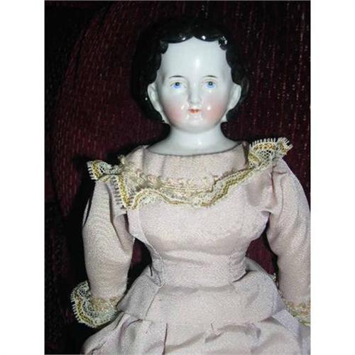 14" Exposed Ears Sloped Shouder China Doll With New Body. Doll comes from a smoke free environment. Buyer to pay shipping, handling, and insurance. Thanks for viewing.