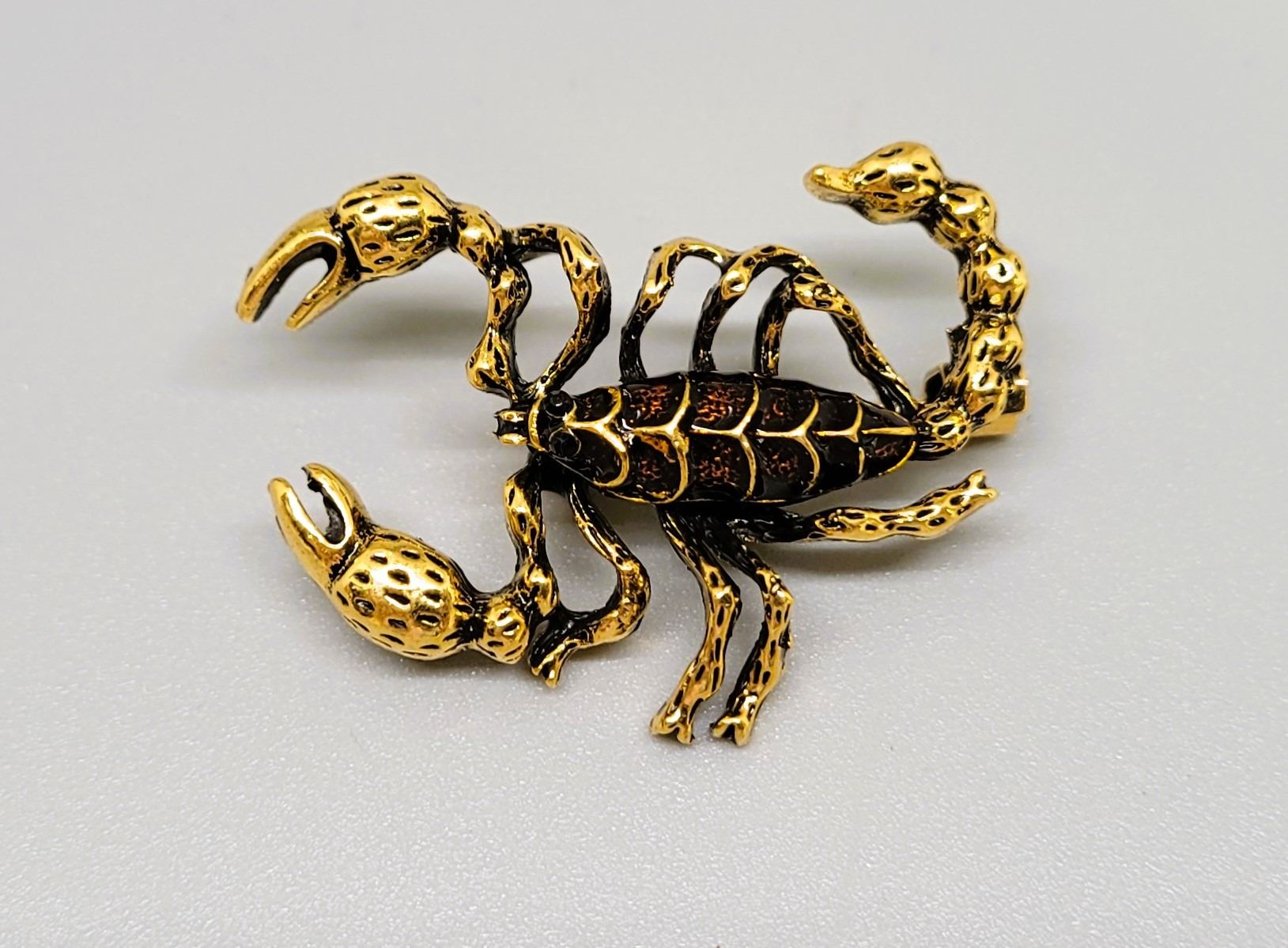 AMBER ENAMEL SCORPION BROOCH. JEWELLERY